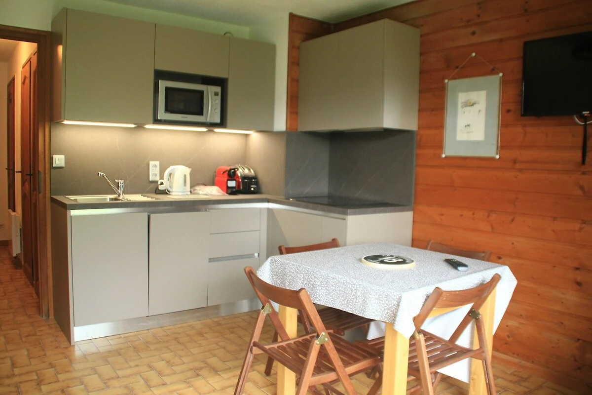 Dieses charmante Erdgeschossapartment bietet mit kompakten, aber komfortablen 23 m² einen gemütlichen Rückzugsort für bis zu 4 Gäste. Das Apartment verfügt über ein sonniges Wohnzimmer mit Doppelschlafsofa und Etagenbetten und ist somit ideal für kleine Familien oder Gruppen. Von der privaten Terrasse aus genießen Sie den atemberaubenden Blick auf das Abondance-Tal. Zu den weiteren Annehmlichkeiten gehören ein gemeinsamer Skiraum, ein für Kleinfahrzeuge geeigneter Außenparkplatz und die Möglichkeit, Haustiere mitzubringen, was Ihren Aufenthalt noch flexibler macht.