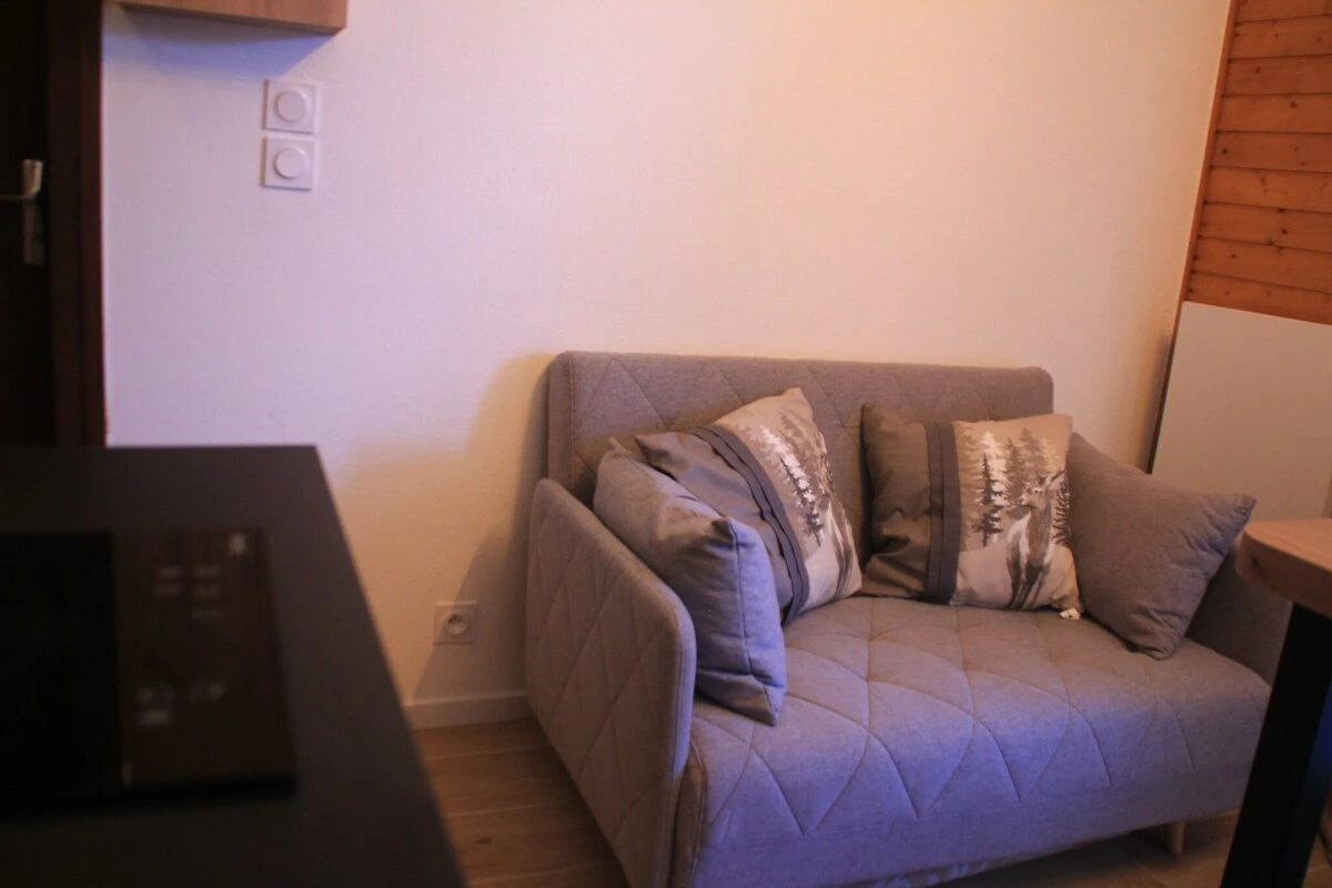 Diese gemütlich eingerichtete Unterkunft bietet komfortable Unterkunft für bis zu vier Gäste. Sie verfügt über ein Wohnzimmer mit einem Schlafsofa (140 x 190 cm) und einen separaten Gemeinschaftsbereich mit einem Etagenbett (90 x 190 cm). Der Balkon mit Blick auf das atemberaubende Tal lädt zum Entspannen im Freien ein. Haustiere sind nicht erlaubt, in der Hochsaison bietet die Residenz jedoch einen kostenlosen Shuttleservice, sodass Gäste die Umgebung bequem erkunden können. Optionale Annehmlichkeiten wie Bettwäsche, Handtücher und Endreinigung können für zusätzlichen Komfort während des Aufenthalts gemietet werden. Gästen stehen außerdem ein ausgewiesener Parkplatz und ein Skiraum zur Verfügung.