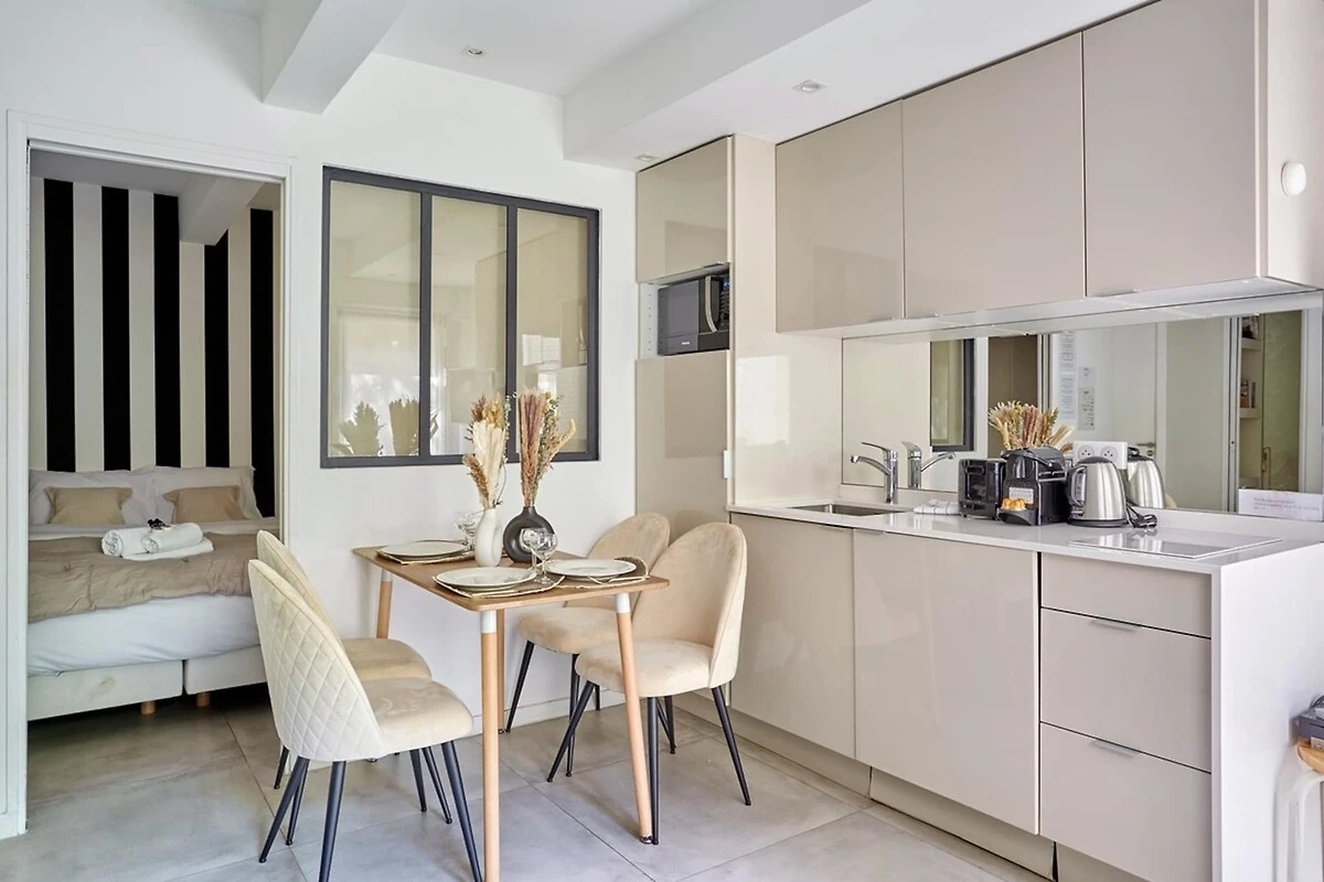 Ich habe kürzlich in der Résidence Le Marais übernachtet und war von der herzlichen Atmosphäre angenehm überrascht. Die Lounge war der perfekte Ort, um nach einem Tag in Paris zu entspannen. Der Flachbildfernseher war eine schöne Ergänzung, und ich habe den Blick in den Garten von der Wohnung aus sehr genossen. Die Küche war bestens ausgestattet, sodass ich problemlos mein Frühstück zubereiten konnte. Ich kann diese Unterkunft jedem wärmstens empfehlen, der einen komfortablen Aufenthalt im Herzen der Stadt verbringen möchte!