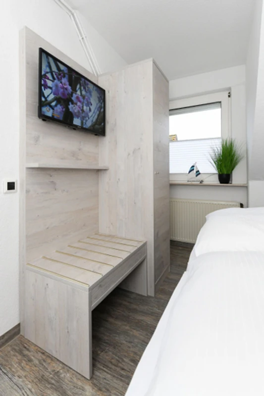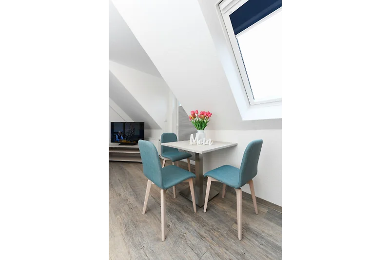 Das "Haus Strandkorb" bietet Ihnen natürlich WLAN im gesamten Haus an. Jede unserer Wohnungen ist mit einem Flachbildfernseher, einer hochwertigen Matratze und einer modernen Küche ausgestattet, die alle Elektrogeräte und einen Esstisch beinhaltet. Die Badezimmer sind ebenfalls hochwertig ausgestattet und bieten eine optimale Platzausnutzung. Einige unserer Wohnungen verfügen über eine eigene Terrasse, und eine Wohnung ist sogar mit einem Wintergarten ausgestattet. Zudem stehen unseren Gästen gemeinschaftlich genutzte Waschmaschinen und Wäschetrockner zur Verfügung. Hinter dem Haus erwartet Sie ein schöner Garten mit viel Platz für die Kinder. Ferienwohnung "Strandkorb 7" Grösse: ca. 34 Quadratmeter Wohnraum mit integrierter Küche Schlafzimmer Badezimmer mit Dusche, Waschtisch und WC Obergeschoss optimal für 1 bis 2 Personen und zusätzlich ein Kleinkind