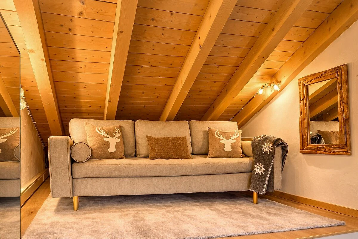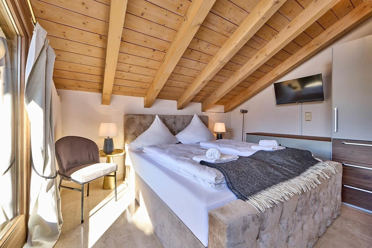 Das Apartment wurde sowohl auf Komfort als auch auf Stil ausgelegt und verfügt über eine private Infrarotsauna sowie drei Balkone – perfekt zum Entspannen nach einem Tag in den Bergen.