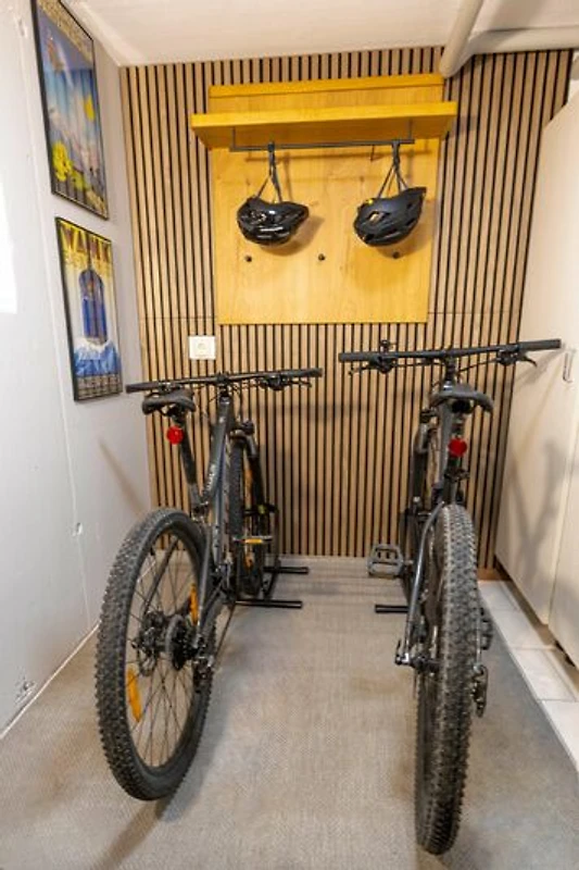 Ein privater Ski- und Fahrradraum mit Stauraum für Skier und Fahrräder, einschließlich E-Bike-Lademöglichkeit, erleichtert die Vorbereitung sowohl auf Wintersport als auch auf Sommerabenteuer.