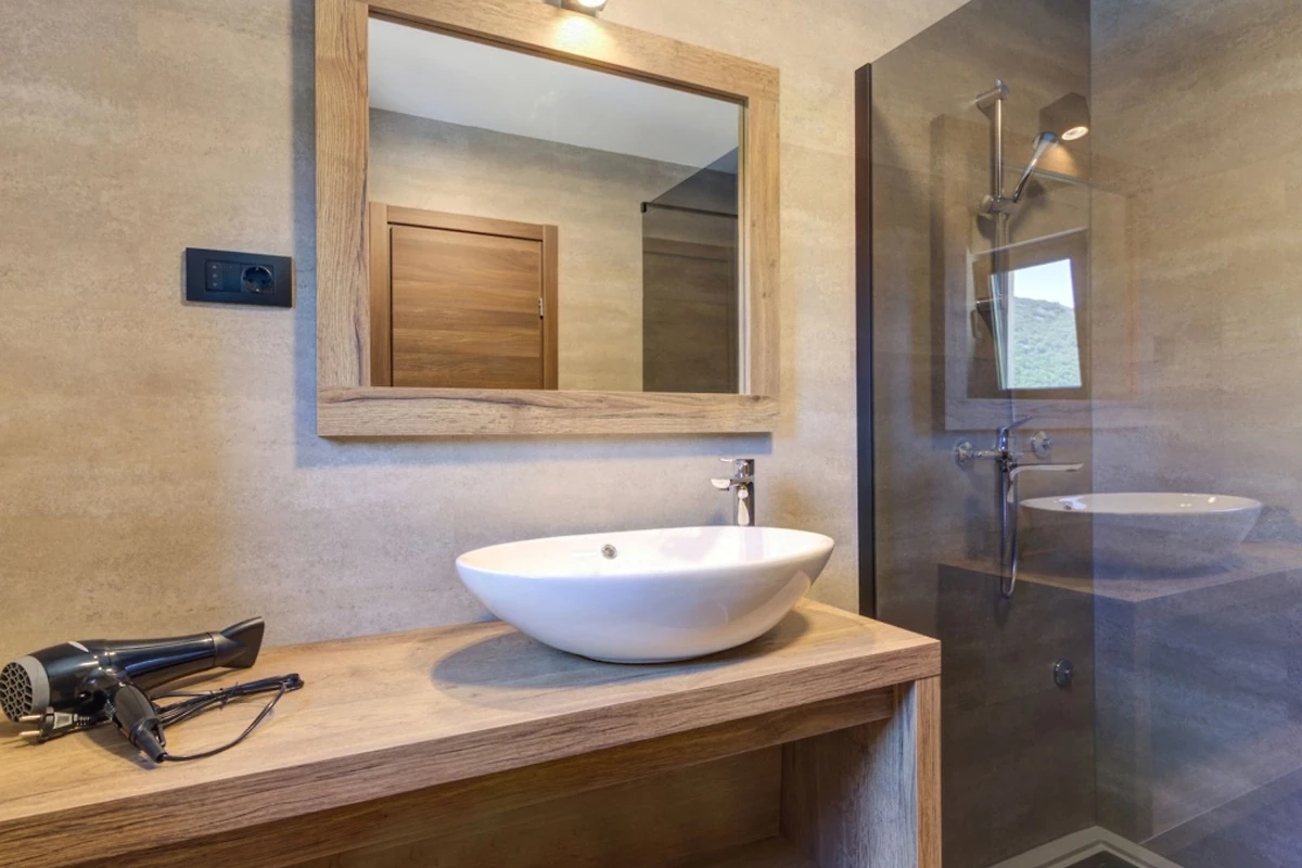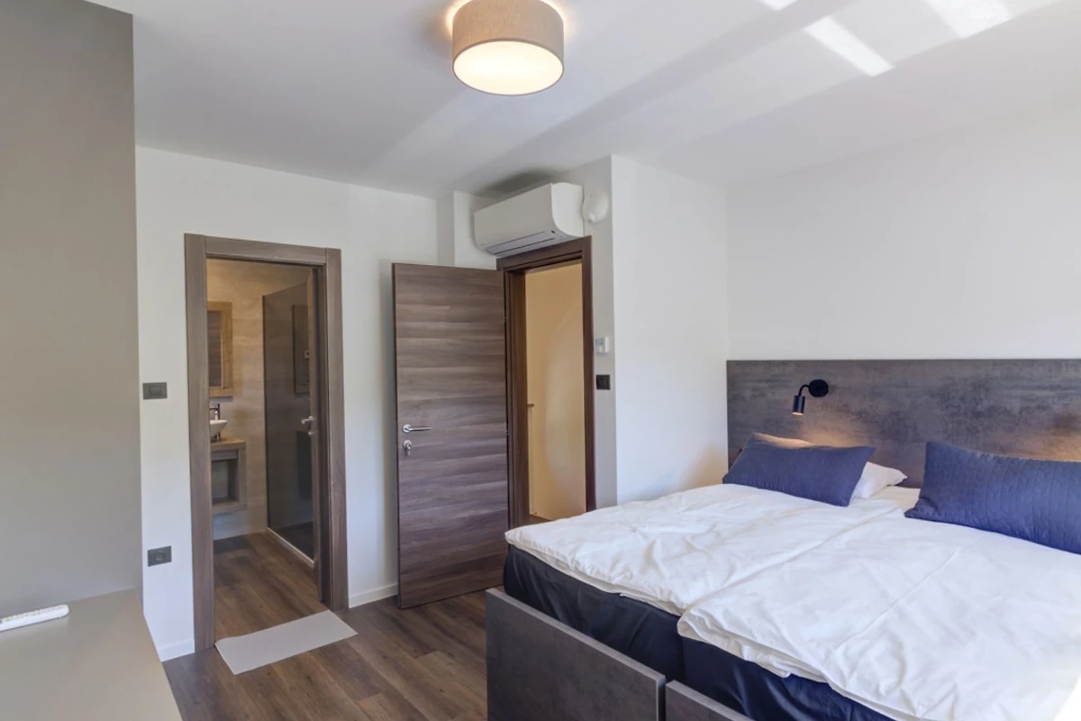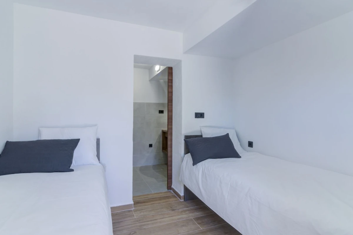 Die Villa Casa Verde verfügt über insgesamt 4 Schlafzimmer mit eigenem Badezimmer und einer zusätzlichen Toilette mit Waschbecken. Ein Schlafzimmer mit Badezimmer befindet sich in einem separaten Gebäude mit Küchenzeile, ideal für Gäste, die mehr Privatsphäre wünschen. Die Schlafzimmer und Badezimmer sind mit Fussbodenheizung und Klimaanlage ausgestattet, um Ihren Aufenthalt noch angenehmer zu gestalten. Waschmaschine, Bügeleisen und Bügelbrett stehen ebenfalls zur Verfügung.
