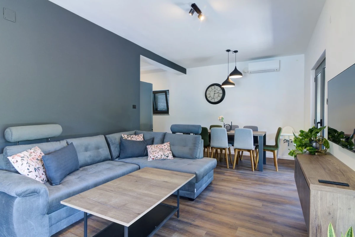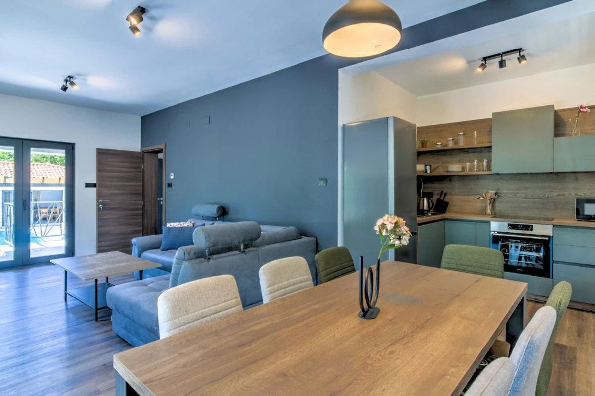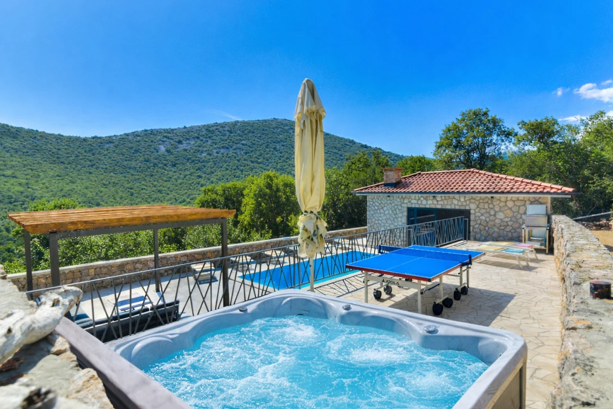 Die Villa Casa Verde ist eine geräumige und modern eingerichtete Villa in Bater, in der Nähe von Novi Vinodolski. Die Villa befindet sich in ruhiger Lage, umgeben von Grün, und ist ideal für einen wirklich erholsamen Urlaub in einer natürlichen Umgebung. Die Villa verfügt über 4 Schlafzimmer und bietet Platz für bis zu 8 Gäste, die die voll ausgestattete Inneneinrichtung, den grossen Garten mit Swimmingpool und unterhaltsame Aktivitäten wie Darts, Tischtennis und Tischfussball geniessen können. Auch Haustiere sind in der Villa herzlich willkommen.