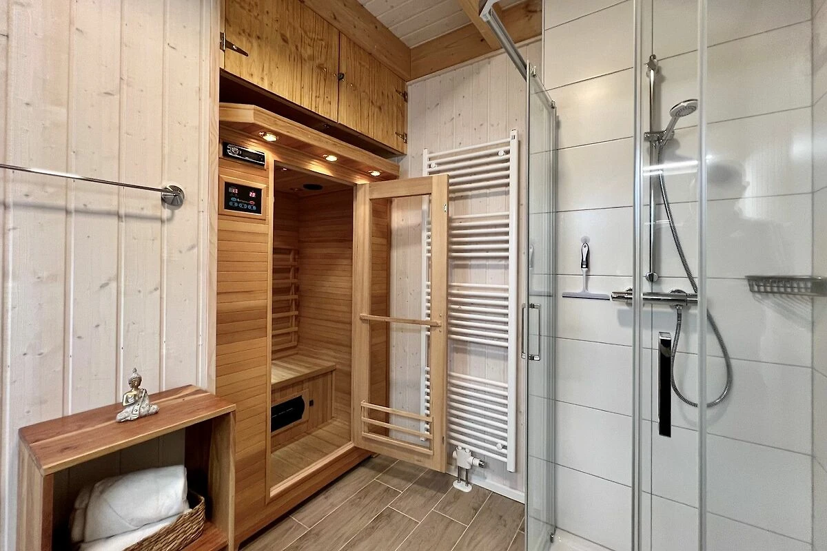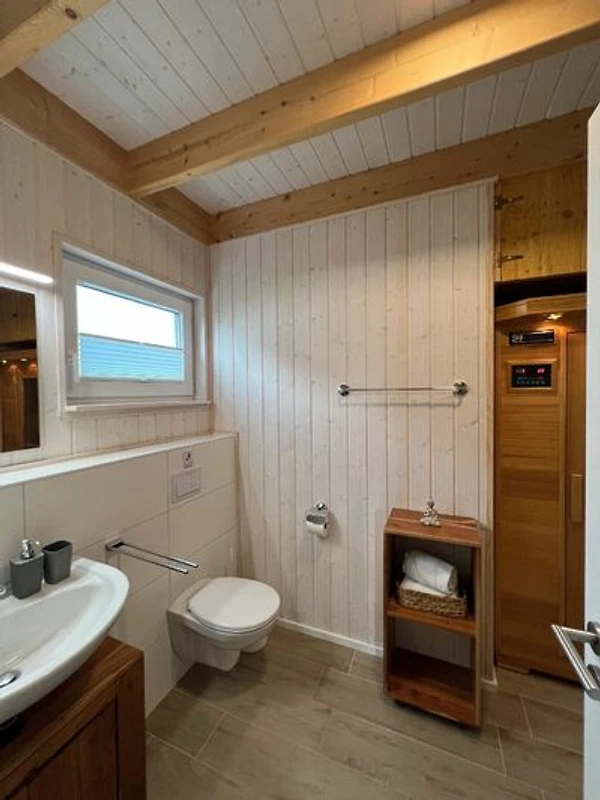 Herzlich Willkommen in Ihrem Ferienhaus "TimeOut Ostsee" in Olpenitz. Ihr freistehendes, 80m² großes Feriendomizil verfügt über einen großzügigen Wohn- und Essbereich, zwei Schlafzimmer, zwei Bäder und eine Küche. Durch die Liebe zum Detail und der hochwertigen Ausstattung werden Sie sich gleich wie zuhause fühlen. Die großen Fenster sorgen für ein lichtdurchflutetes, großzügiges Wohngefühl. Im Wohnbereich können Sie es sich auf dem Sofa gemütlich machen, ein gutes Buch lesen oder auf dem Flachbild-TV Ihre Lieblingsserie schauen. Die Couch lässt sich mit wenigen Handgriffen zu einem Schlafsofa umfunktionieren, so dass ein weiterer Schlafplatz für ein Kind geschaffen werden kann. An kühlen Abenden verbreitet der Kamin eine wohlige Wärme. Die Küche bietet alles, um sich und Ihre Familie kulinarisch verwöhnen zu können. Ein Bad rundet das Erdgeschoss ab. Das Badezimmer verfügt über ein Fenster mit Sichtschutz, eine Dusche, ein WC, eine Handtuchheizung und als besonderes Highlight, eine Infrarotkabine. Hier können Sie sich nach langen Strandspaziergängen aufwärmen und entspannen. Im Obergeschoss befinden sich zwei geschmackvoll eingerichtete Schlafzimmer. Eines der beiden Zimmer bietet ein gemütliches Doppelbett (180x200cm) und einen Schrank, das zweite Schlafzimmer ist mit zwei Einzelbetten (90x200cm), sowie ebenfalls mit einem Schrank und einem Flachbild-TV ausgestattet. Beide Zimmer verfügen über Verdunkelungsmöglichkeiten, sodass einem erholsamen Schlaf nichts mehr im Wege steht. Das Bad im Obergeschoss bietet ein Dachfenster mit Sichtschutz, eine Badewanne, eine Handtuchheizung, einen Föhn und ein weiteres WC. Genießen Sie die möblierte Terrasse um zu entspannen, Grillabende zu veranstalten oder einfach um die Seele baumeln zu lassen. Für Ihre mitgebrachten oder beim Tourguide gemieteten Räder steht Ihnen ein abschließbarer Schuppen zur Verfügung. Nicht nur für Ihre Zweiräder ist gesorgt: vor Ihrem Ferienhaus stehen Ihnen 2 Parkplätze zur Verfügung. Das Haus ist für 4 Erwachsene und 1 Kind ausgestattet.