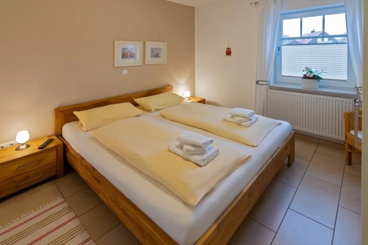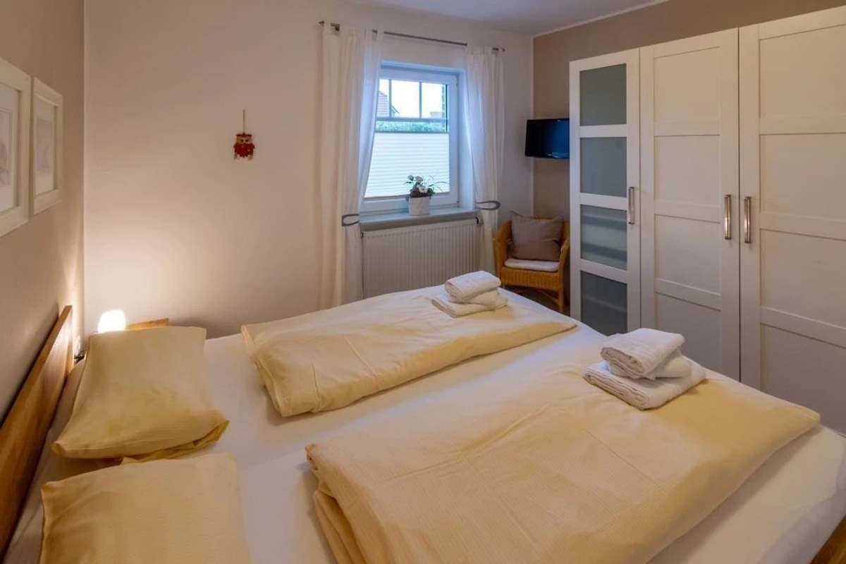 Sie bietet Platz für maximal 3 Personen und verfügt über 2 Zimmer, darunter ein Schlafzimmer mit Doppelbett und hochwertigen Komfort-Matratzen sowie ein geräumiges Badezimmer mit Dusche, Waschbecken und WC. Die Wohnung ist eine Nichtraucher-Unterkunft und Haustiere sind nicht erlaubt.