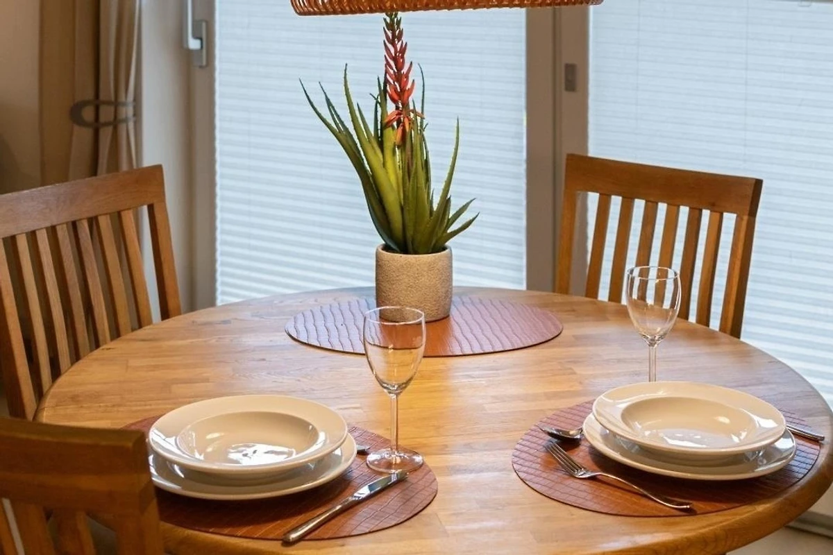 Für Unterhaltung sorgen Internet, WLAN, TV, Radio, ein DVD-Spieler sowie Bücher und Spiele. Die Küche ist offen zum Wohnzimmer und ausgestattet mit einem Ceranherd, einem Gefrierfach oder -schrank, einer Espressomaschine, einer Mikrowelle, einem Kühlschrank und einer Spülmaschine. Weitere Küchengeräte umfassen eine Kaffeemaschine, einen Wasserkocher, einen Mixer, einen Toaster, einen Eierkocher und einen Elektrogrill. Geschirr und Besteck, Geschirrhandtücher und Gewürze sind ebenfalls vorhanden, ebenso wie ein Abfalleimer.