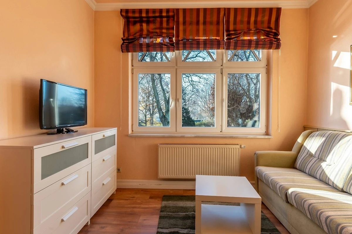 Die Ferienwohnung Poseidon in der Villa Venske in Binz bietet auf 70 Quadratmetern ein komfortables Zuhause in einem rustikal-mediterranen Stil. Direkt gegenüber dem Kleinbahnhof gelegen, eignet sich diese charmante Unterkunft ideal für einen entspannten Aufenthalt auf der Insel Rügen. Mit einem grosszügigen Wohnbereich, einem Schlafzimmer mit Doppelbett und einem weiteren Schlafzimmer mit einer Schlafcouch, bietet sie Platz für bis zu vier Personen. Babyreisebett und Hochstuhl können bei Bedarf für jeweils 10,00 € pro Woche gemietet werden, so dass ein Baby als 5. Person hinzu gebucht werden kann.