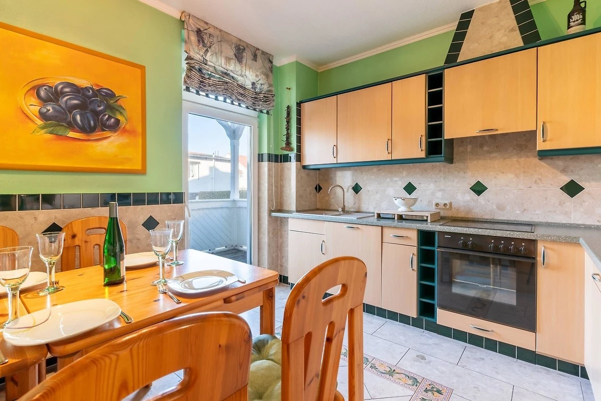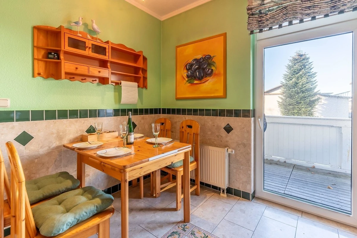 Der feinsandige Strand von Binz ist in etwa 20 Minuten zu Fuss erreichbar. Die besondere Kombination aus mediterranem Flair und komfortabler Ausstattung macht diese Wohnung zu einem idealen Rückzugsort für Ihren Urlaub.