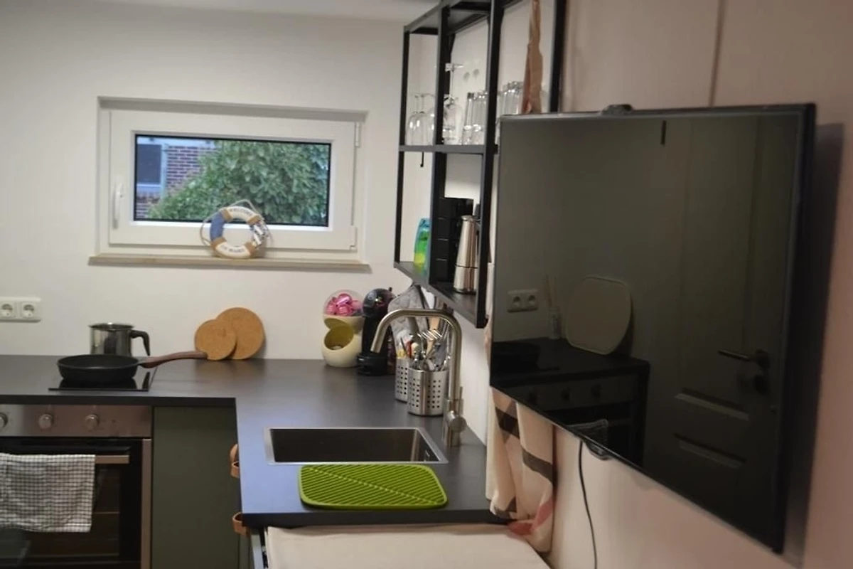 Schön, dass Sie sich weiter über unser Apartment "Smutje" informieren möchten.Das Apartment "Smutje" ist perfekt für 1-2 Erwachsene mit maximal einem Kleinkind geeignet (auf Wunsch mit Babybett) und befindet sich im Erdgeschoss unseres Ferienhauses. Somit ist der "Smutje" auch für Personen mit Kinderwägen passend. Neben dem eigenen Badezimmer gehören ein Wohnzimmer mit offener Küche und ein grosses Schlafzimmer zu dieser Wohnung.Die Küche ist mit einem Backofen, einem Kühlschrank, einem Induktionskochfeld und einer Kaffeemaschine gut ausgestattet. Eine Grundausstattung mit Besteck, Geschirr, Töpfen, Pfannen und Schüsseln ist ebenfalls in der Küche vorhanden. Ausserdem sind die wichtigsten Gewürze immer griffbereit.Das Wohnzimmer verfügt über eine elektrisch ausfahrbare Relaxcocu der Marke Musterring und einen Smart-TV mit 101cm Diagonale. So steht einem gemütlichen Abend nichts mehr im Wege.Im Schlafzimmer finden Sie ein 180cm x 200cm grosses Bett und einen grossen Kleiderschrank mit ausreichend Platz für die Kleidung während Ihres gesamten Aufenthaltes.Haustiere:Haustiere sind grundsätzlich erlaubt. Wir bitten Sie jedoch, uns dies vor Ihrer Anreise mitzuteilen. Zudem fallen für Haustiere zusätzliche Gebühren an (einmalig 50€ pro Aufenthalt).Gegen Gebühr: Bettwäsche und Handtuchset (Badetuch, Handtuch, Fussmatte) | In einem separaten Waschraum können Sie ausserdem gegen eine Gebühr eine Waschmaschine und einen Trockner nutzen. Pro Aufenthalt fällt eine Endreinigungsgebühr von 60€ an. Zudem ist vor Ort eine Kaution in Bar zu hinterlegen. Kurtaxe:Zusätzlich zum Mietpreis kommt noch die Kurtaxe hinzu. Diese beträgt im Zeitraum vom 01.03. bis 31.10 für Erwachsene 3,20 Euro pro Tag und Erwachsener, und für Kinder vom 3. bis zum 13. Lebensjahr 1,95 Euro pro Tag und Kind.Im Zeitraum vom 01.11 bis 31.02 beträgt die Kurtaxe für Erwachsene 1,50 Euro pro Tag und Erwachsener, und für Kinder vom 3 bis zum 13. Lebensjahr 0,85 Euro pro Tag und Kind.Die Kurtaxe entrichten Sie in der Unterkunft.