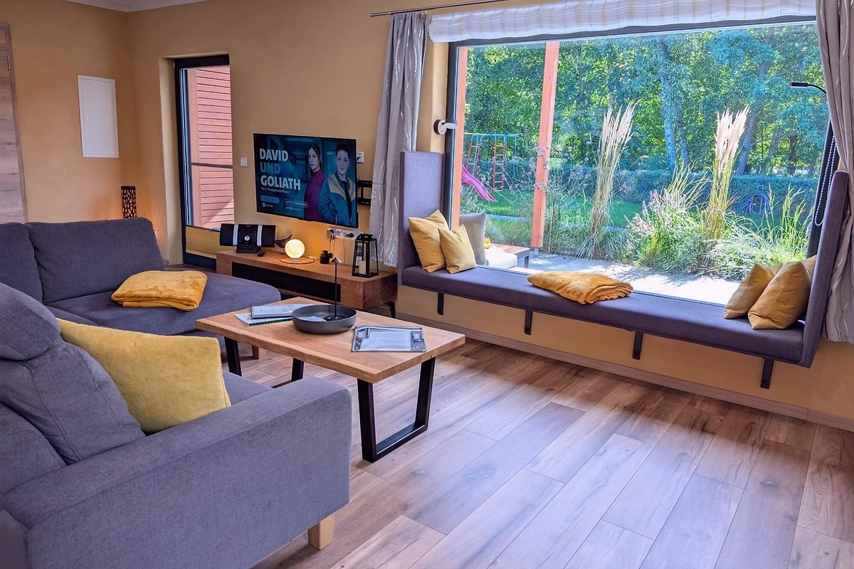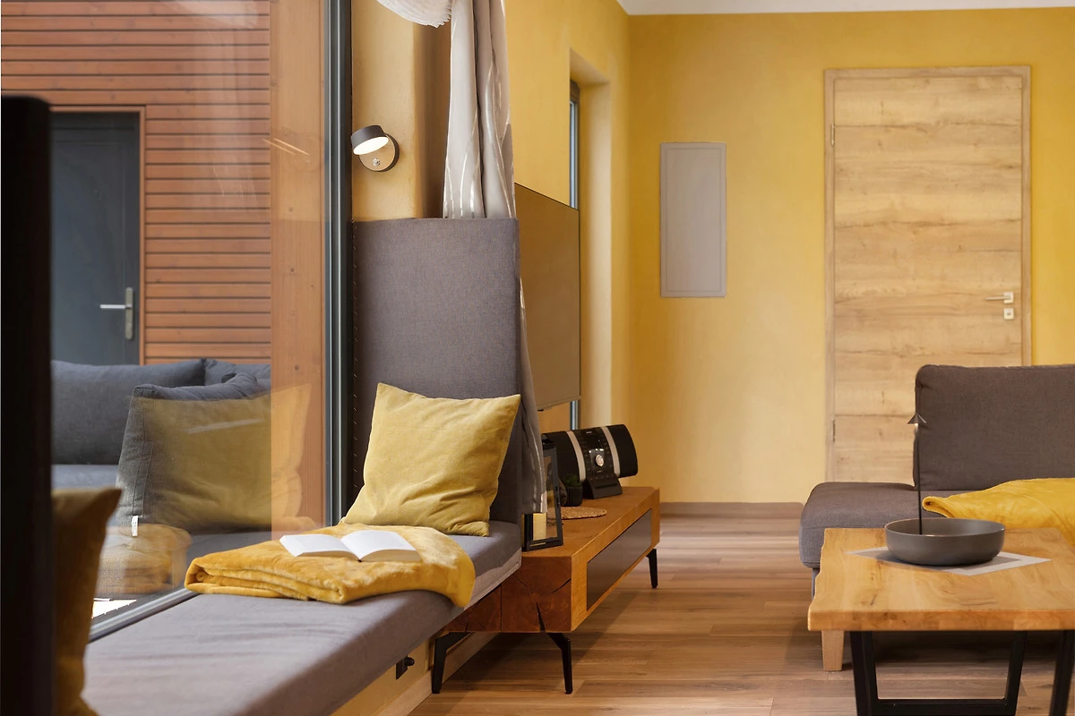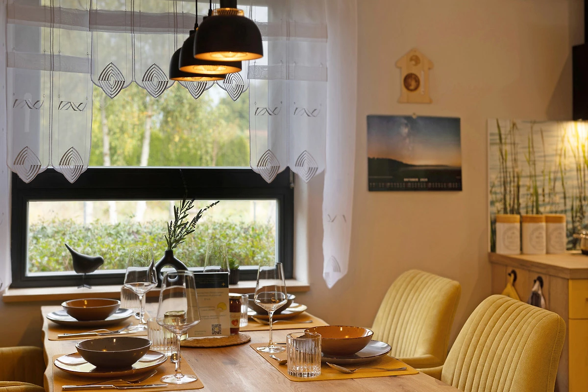 Das Ferienhaus ist fast komplett aus ökologischen nachhaltigen Baustoffen gebaut. Durch Baustoffe wie z. B. unbehandeltem Holz, Hanf und Lehm erwartet Sie eine natürliche Raumatmosphäre.