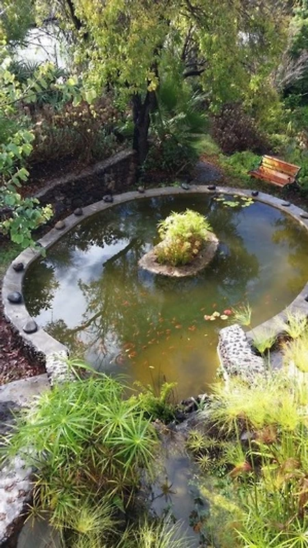 Im Sommer 2017 wurde das Grundstück um eine abwechslungsreiche Teichlandschaft erweitert. Über mehrere Kaskaden fliesst Wasser über einen kleinen pittoresken Wasserfall in ein grosses, mit Natursteinen angelegtes Teichbecken.