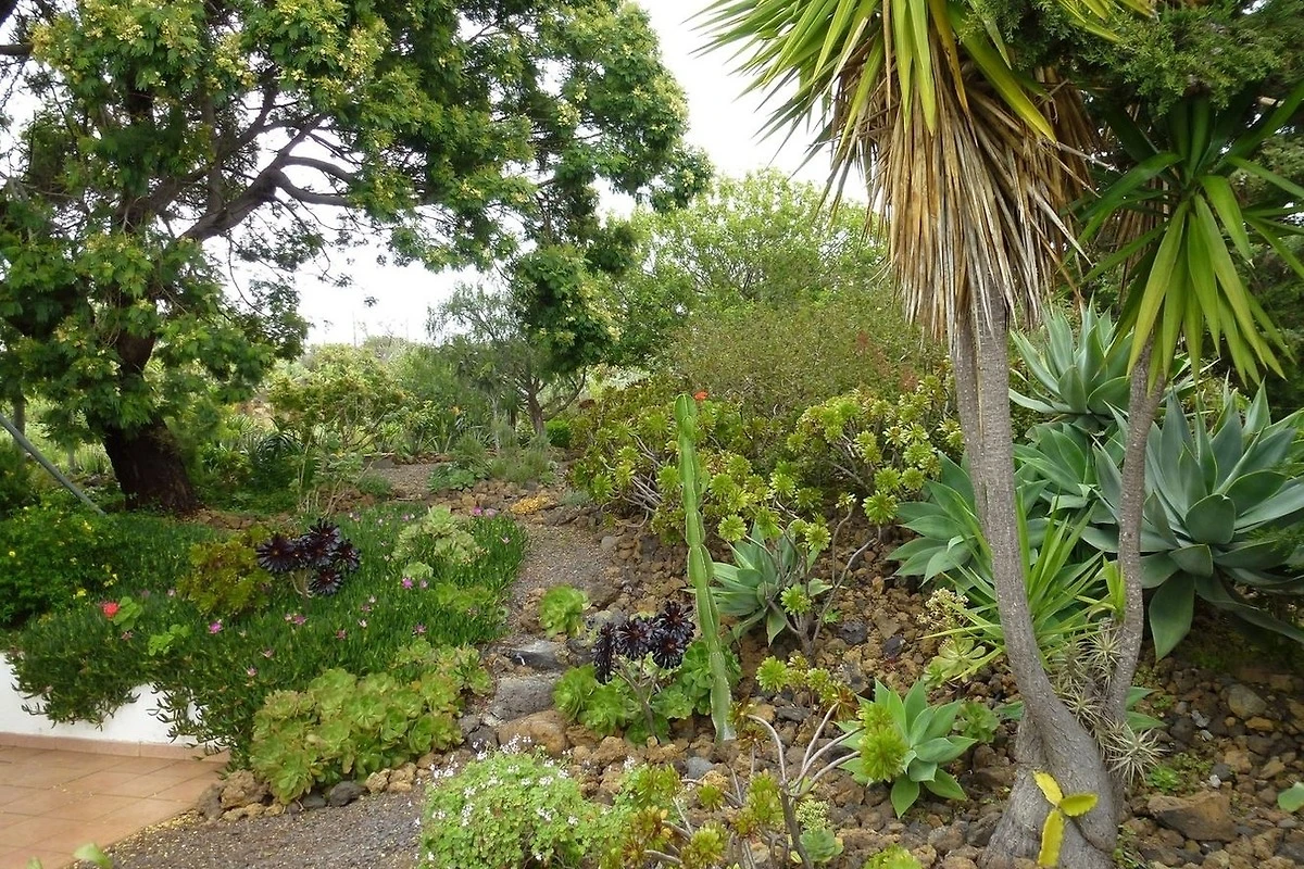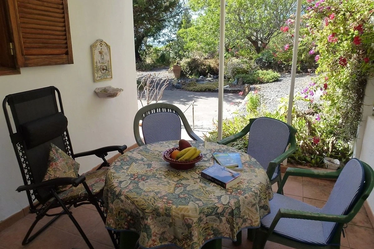 Das freistehende Ferienhaus ist von einem gepflegten, parkähnlichen exotischen Garten umgeben, der zum Entdecken einer Vielzahl subtropischer Bäume und Pflanzen einlädt. Ruhe und Natur können Sie je nach Lust und Wetter auf einem schattigen oder sonnenbeschienenen Platz im weitläufigen Garten geniessen. Sitzgelegenheiten im Freien bieten sich u.a. auch auf einer überdachten Terrasse vor dem Haus.