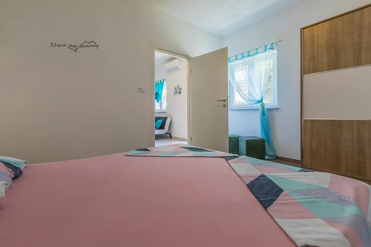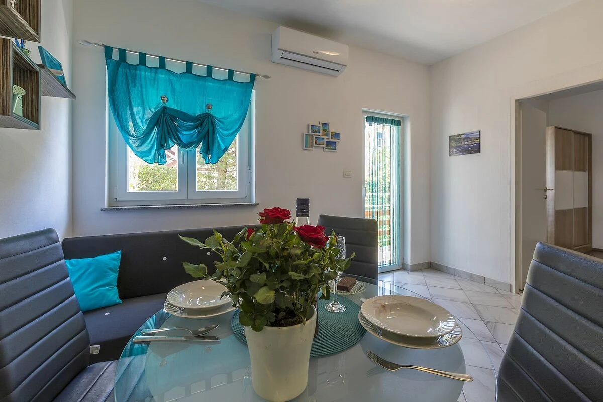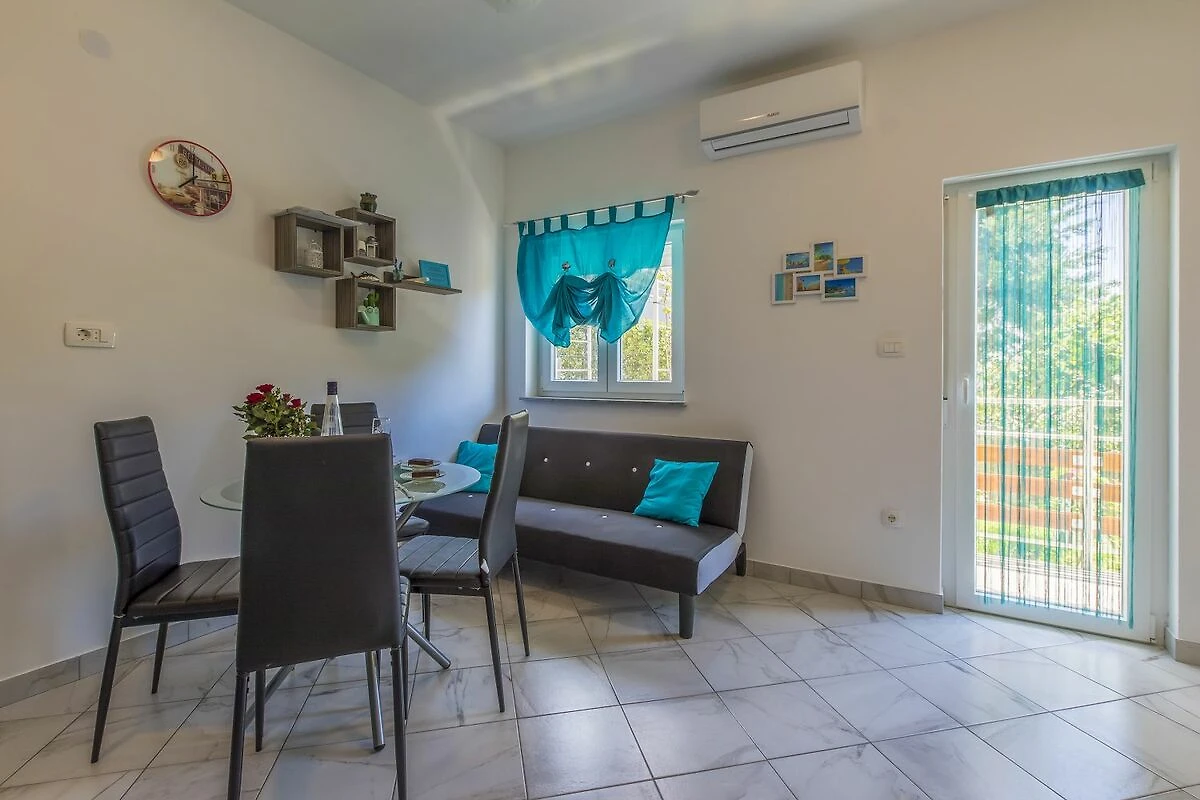 Im beliebten Ferienort Crikvenica befindet sich diese klimatisierte Ferienwohnung, die ideal für 2 Personen ist. Das Apartment befindet sich im Erdgeschoss eines Einfamilienhauses und verfügt über einen gemütlichen Wohn-/Essbereich mit Küche, ein Schlafzimmer und ein Badezimmer.Vom Wohnbereich aus gelangt man auf den 7 m2 grossen, möblierten Balkon. Im abgeschlossenen Aussenbereich befindet sich eine Terrasse mit Grill, die gemeinsam mit anderen Gästen genutzt werden kann. Parkmöglichkeiten befinden sich auf dem Grundstück.