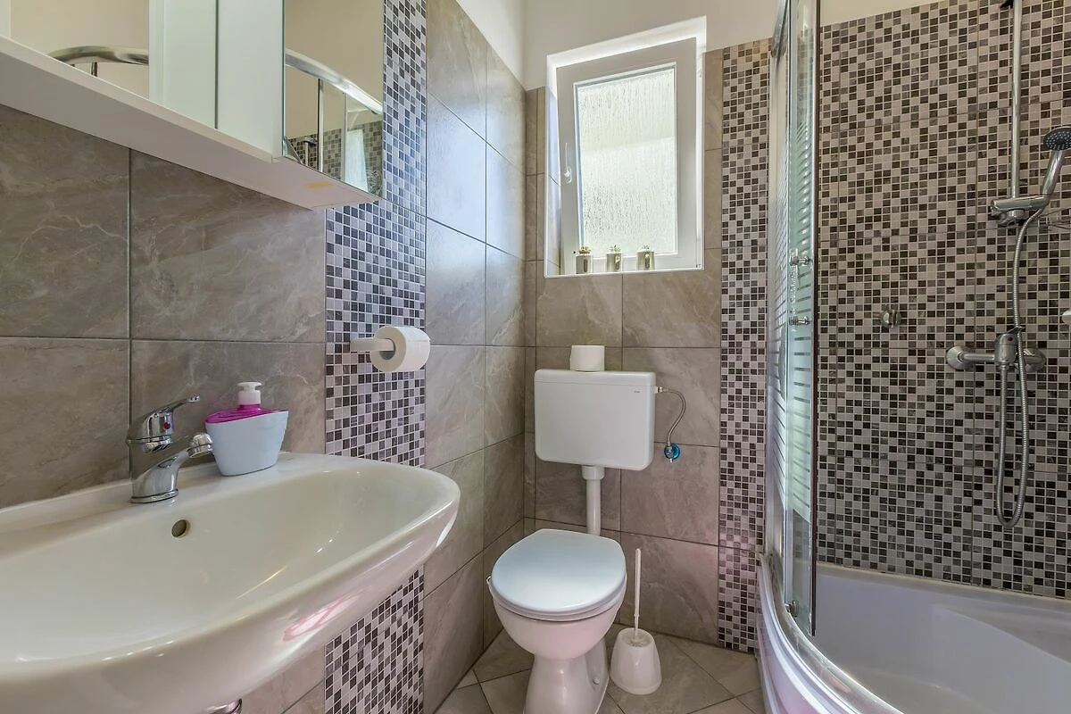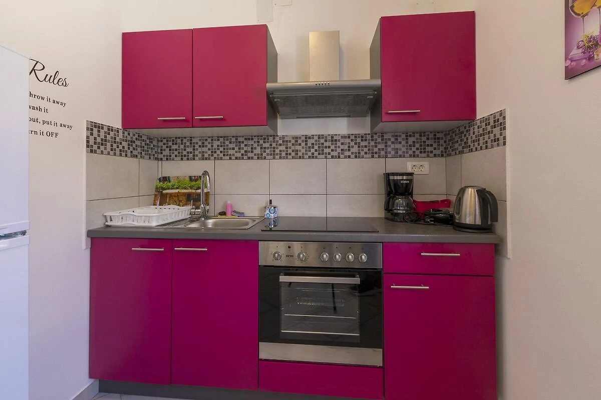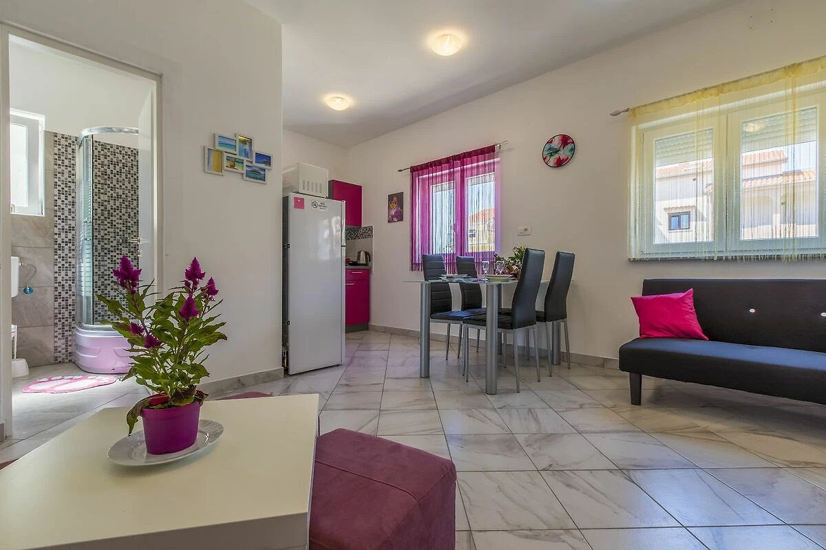 Im beliebten Ferienort Crikvenica befindet sich diese klimatisierte Ferienwohnung, die ideal für 2 Personen ist. Das Apartment befindet sich im Erdgeschoss eines Einfamilienhauses und verfügt über einen gemütlichen Wohn-/Essbereich mit Küche, ein Schlafzimmer und ein Badezimmer. Vom Schlafzimmer aus gelangt man auf den 7 m2 grossen, möblierten Balkon. Im abgeschlossenen Aussenbereich befindet sich eine Terrasse mit Grill, die gemeinsam mit anderen Gästen genutzt werden kann. Parkmöglichkeiten befinden sich auf dem Grundstück.