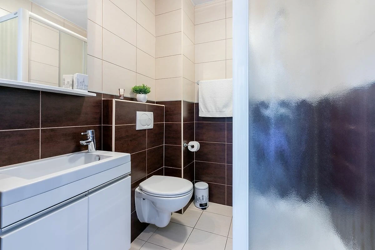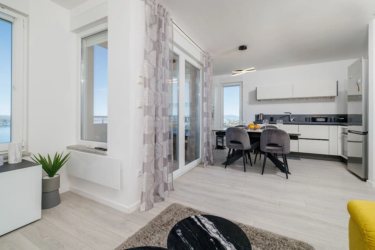 Ubytovanie bolo krásne zariadené a cisté. Boli sme s pobytom velmi spokojní. Apartmán sa nachádza síce dalej od mora (15-20 minut chôdze), no výhlad na more bol nádherný. Takze to stalo za to. V meste máte mnoho aktivít, ktoré môžete robit. Urcite odporúcam nielen miesto pobytu, ale aj toto ubytovanie. Síce nás majitel neprivital pri príchode, ale na to si vôbec nepotrpim. Zadal nám pred príchodom jasne inštrukcie, podla ktorých sme sa riadili a všetko bolo v úplnom poriadku. Na správy reagoval velmi rýchlo