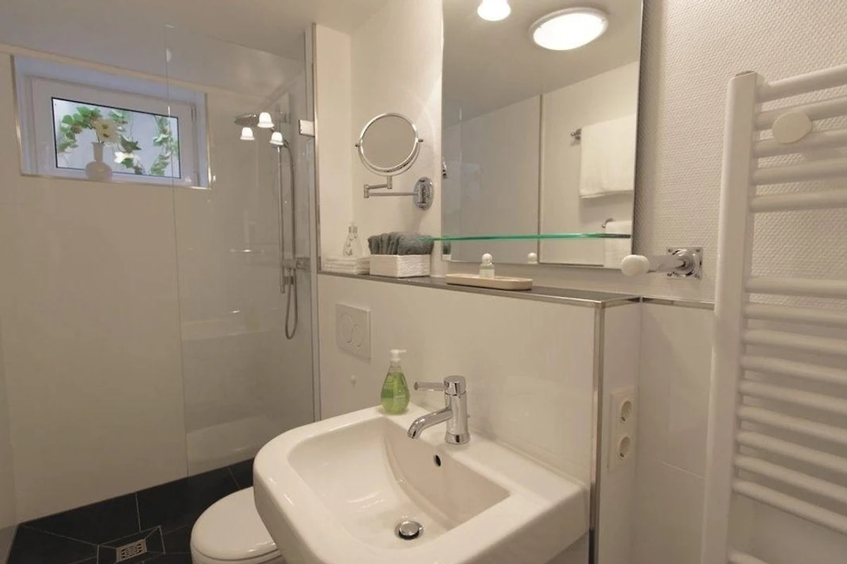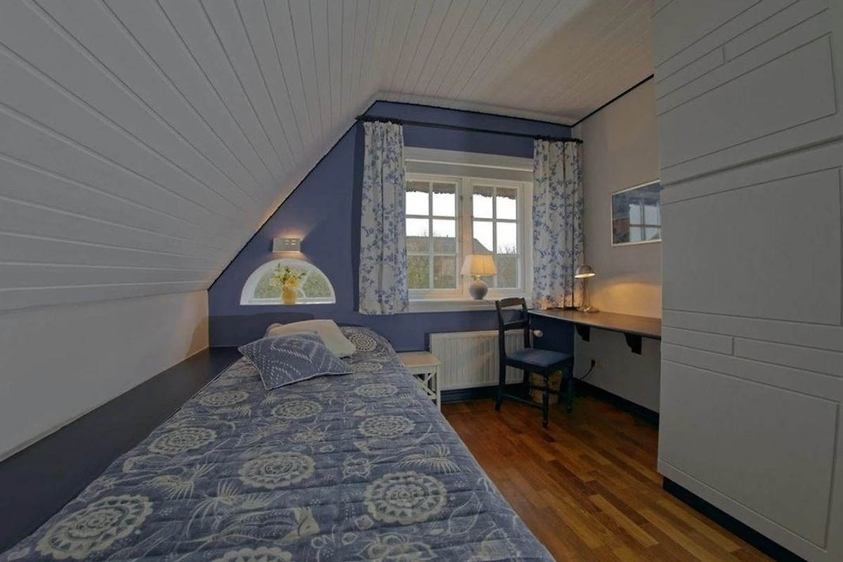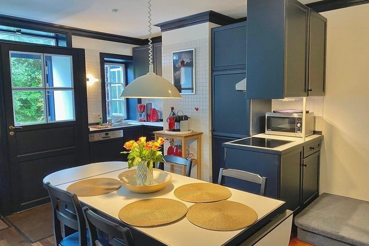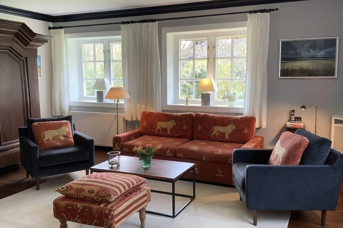 Mitten im Dorf, in einer ruhigen Nebenstrasse liegt dieses schöne urige Hausteil. Das Erdgeschoss in friesisch-blau mit fröhlichen Farbakzenten erfreut mit dem offenen WohnEssbereich mit voll ausgestatteter Küche, sowie einem Gäste-WC. Von hier aus gelangen Sie auch auf die Sonnenterrasse gen Westen. Im Obergeschoss geht es weiter mit einem Doppelschlafzimmer und einem modernen Duschbad. Gleich nebenan liegt noch ein weiteres Schlafzimmer mit zwei Einzelbetten. Damit die Wartezeiten sich morgens im Rahmen halten, steht Ihnen im Untergeschoss noch ein weiteres Duschbad zur Verfügung.