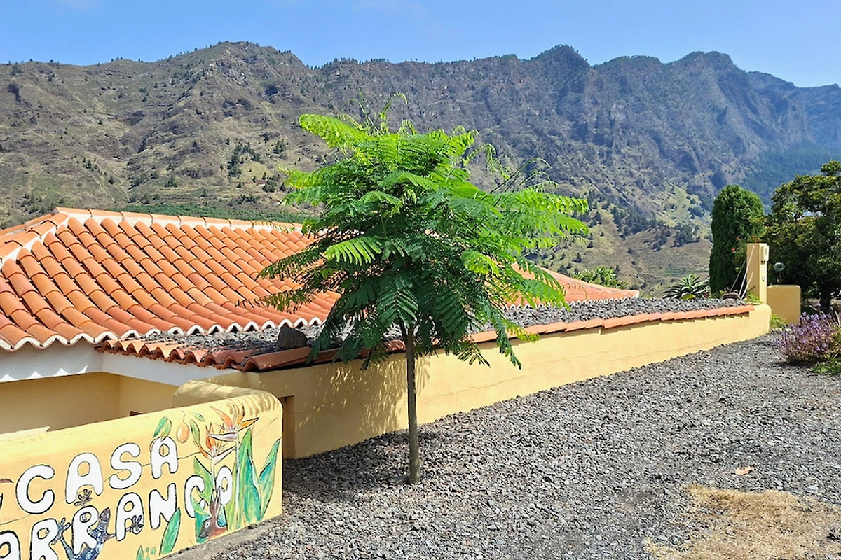 Das im kanarischen Stil gebaute und liebevoll eingerichtete Ferienhaus liegt im sonnigen Westen von LaPalma auf ca. 420 m ü.M., direkt am Barranco de las Angustias.