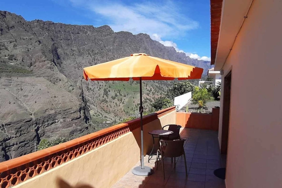 Dem Haus vorgelagert ist eine schöne Terrasse mit fantastischem Blick auf den gegenüberliegenden Bergrücken El Time, in die Caldera de Taburiente, auf den Atlantik und Puerto Tazacorte.