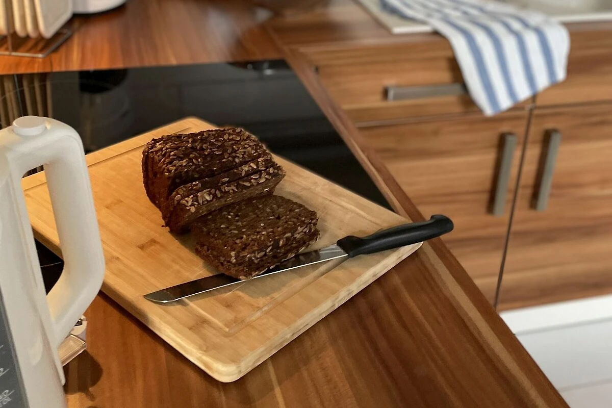 Auf 70qm bietet die Wohnung einen Wohnraum, eine Küche mit Geschirrspüler und Mikrowelle,