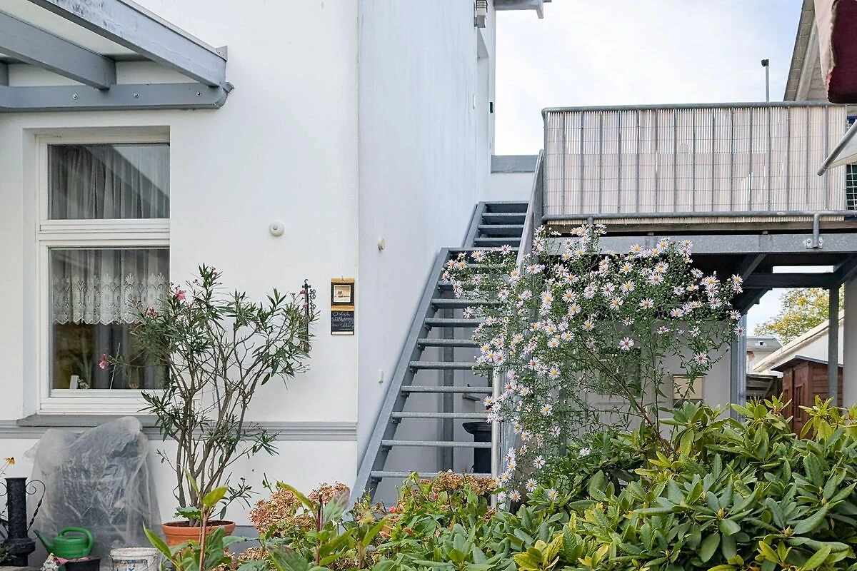 Das Appartement liegt im Obergeschoss und ist über eine Metalltreppe zu erreichen.