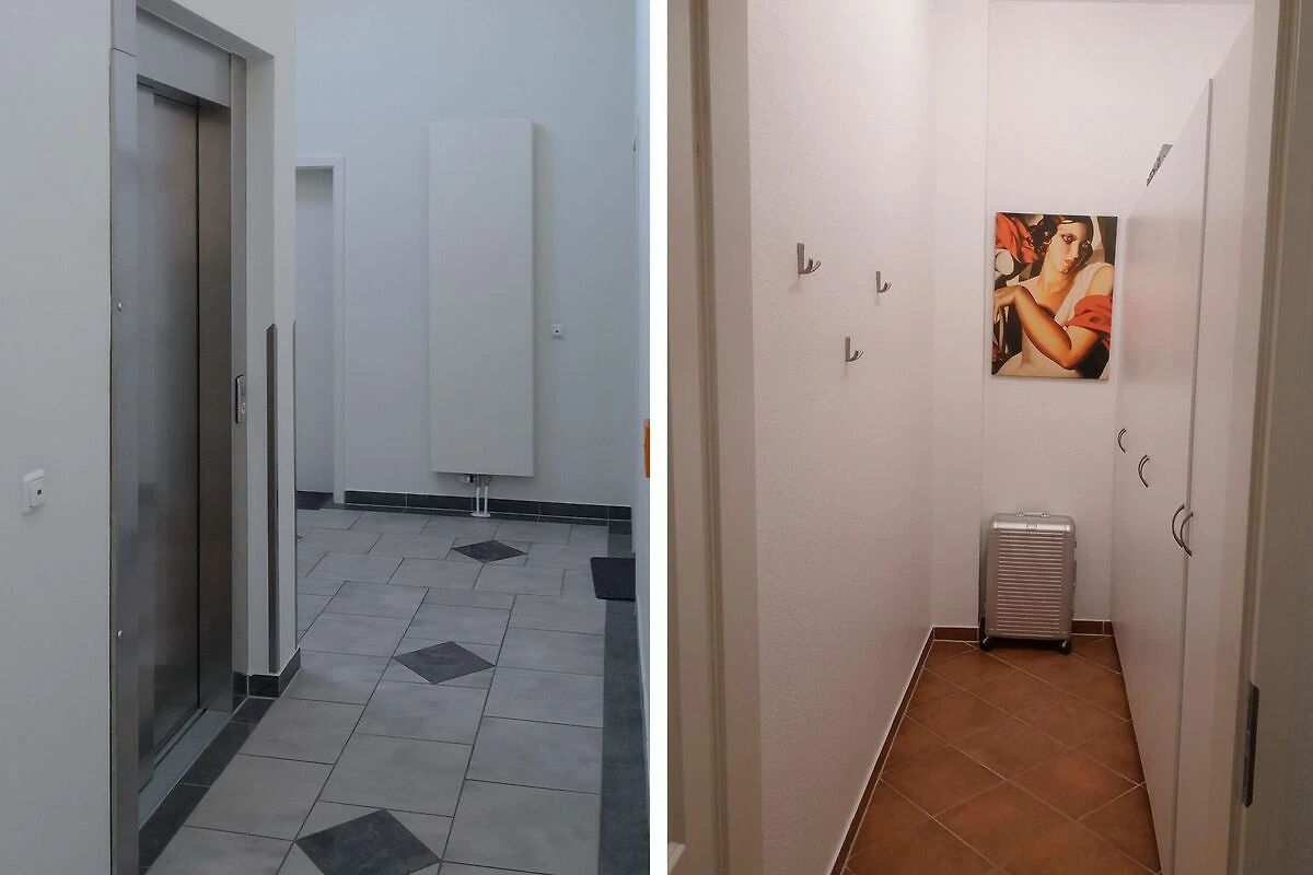 Zu den Annehmlichkeiten eines Urlaubsaufenthaltes in dem modernen Appartementhaus zählen neben einem kostenfreien PKW-Stellplatz pro Wohnung ein abschliessbarer Fahrradraum, ein Fahrstuhl und gemeinschaftlich nutzbare Maschinen zum Waschen und Trocknen (Münzautomaten).