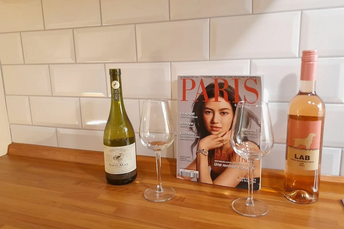 • Bügelutensilien und eine Haushaltsleiter sind in der Wohnung vorhanden