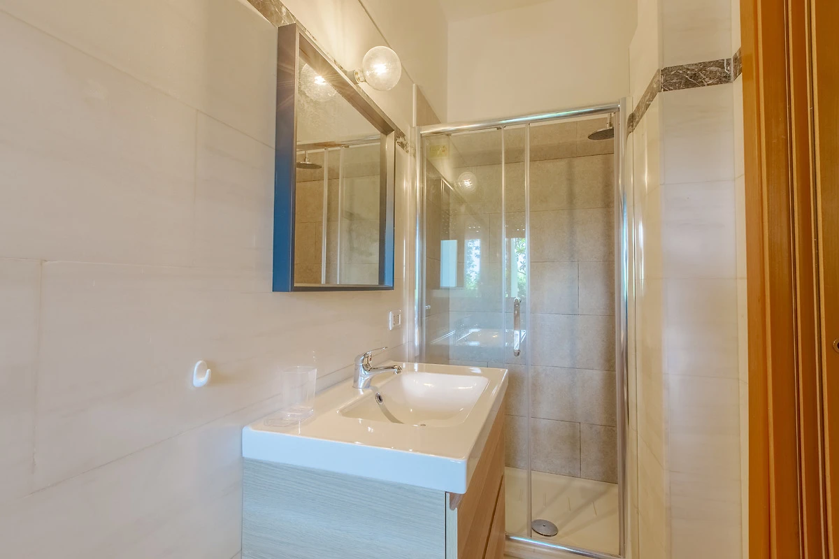 n.1 Dreibettzimmer mit n.1 Doppelbett und n.1 Einzelbett, n.1 Doppelzimmer, n.1 Badezimmer mit Dusche, n. 1 Wohnzimmer mit n. Schlafsofa, n.1 Küche.