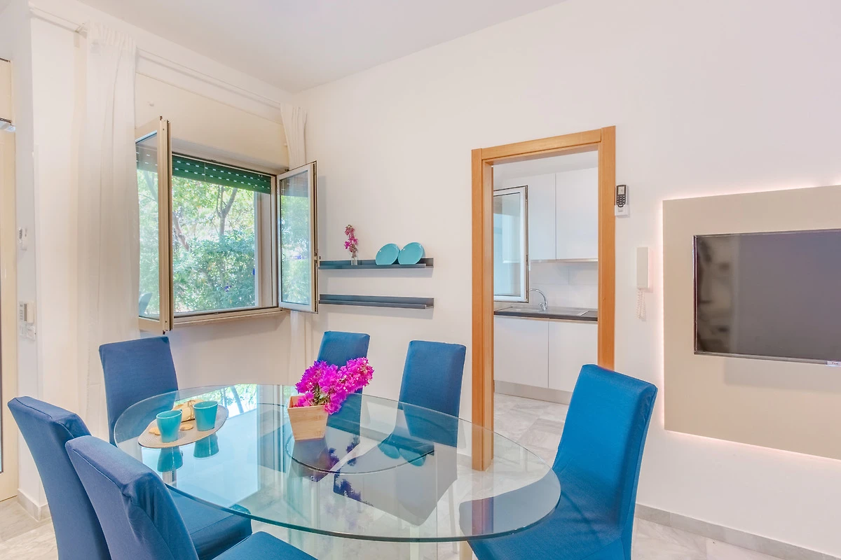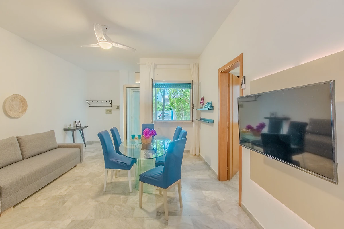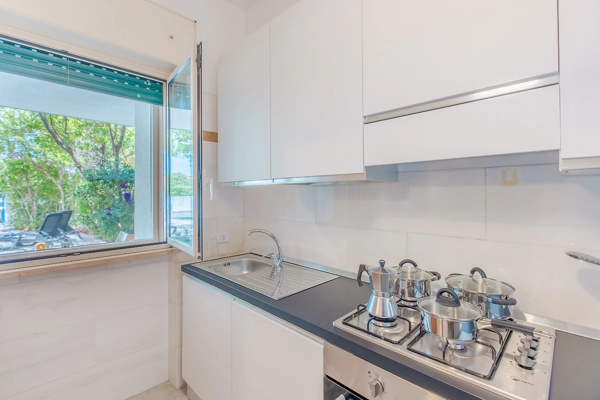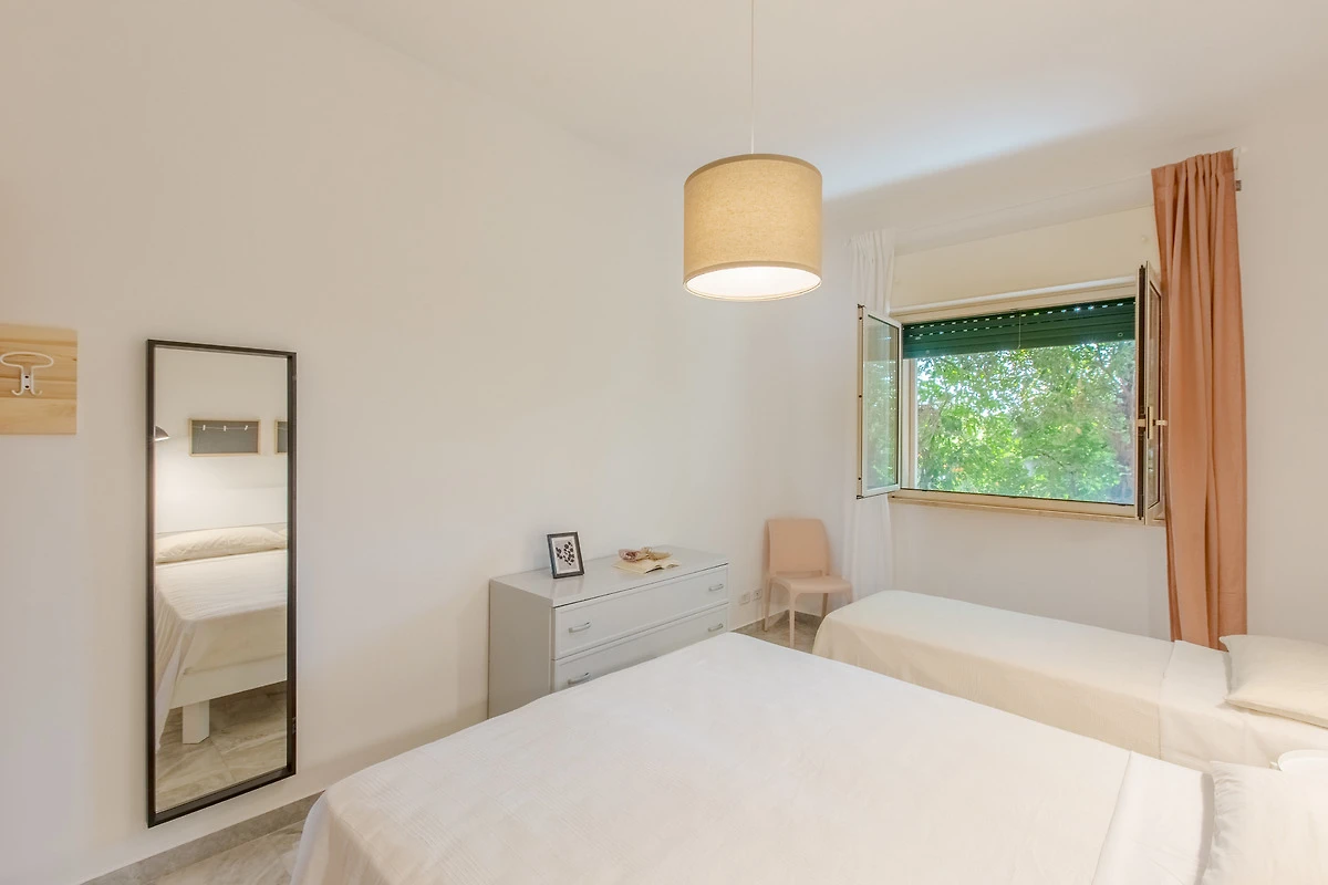 n.1 Dreibettzimmer mit n.1 Doppelbett und n.1 Einzelbett, n.1 Doppelzimmer, n.1 Badezimmer mit Dusche, n. 1 Wohnzimmer mit n. Schlafsofa, n.1 Küche.