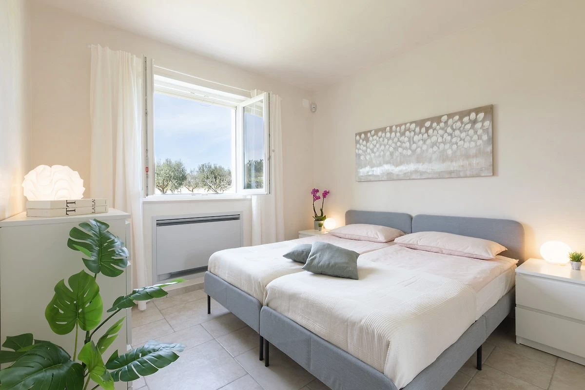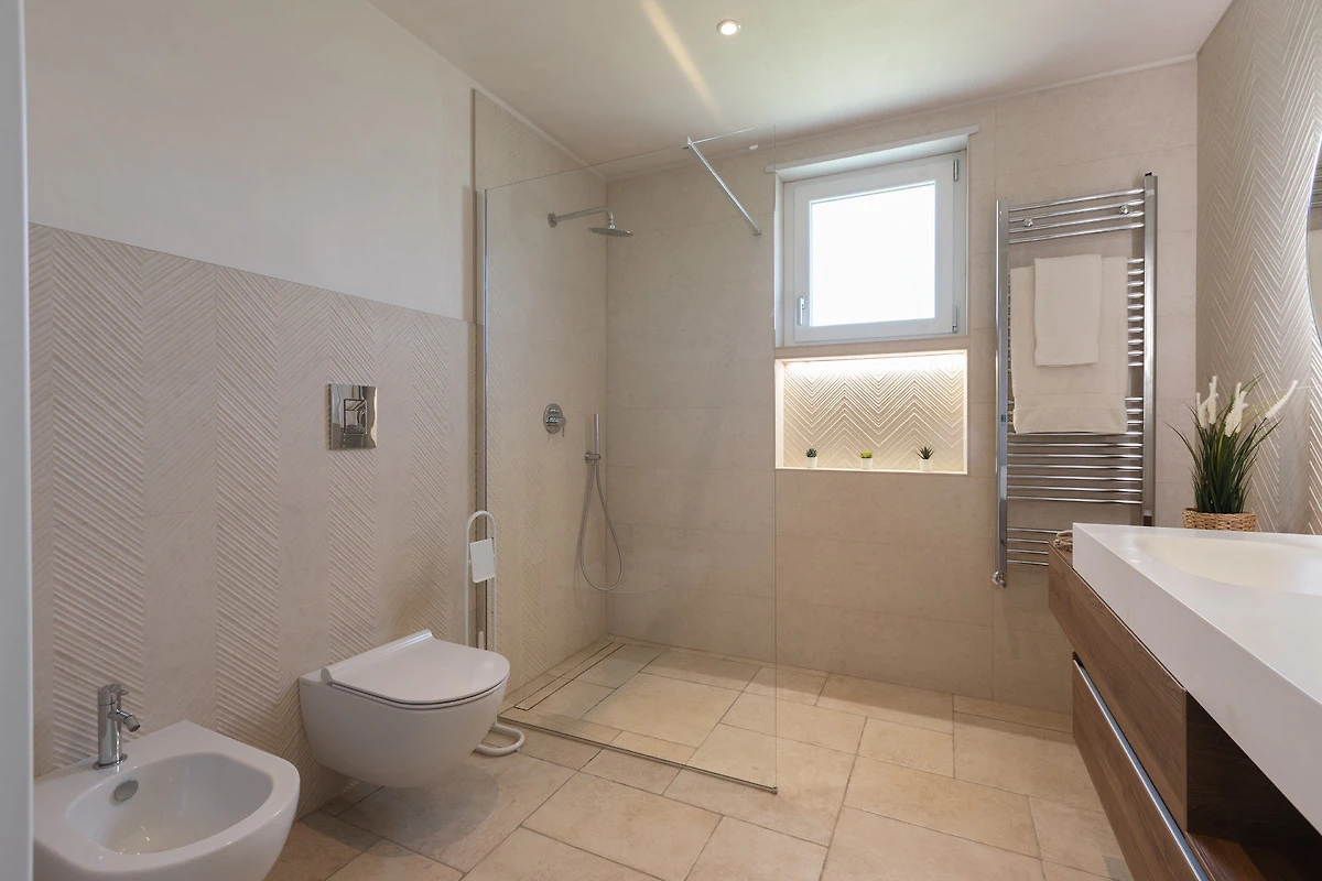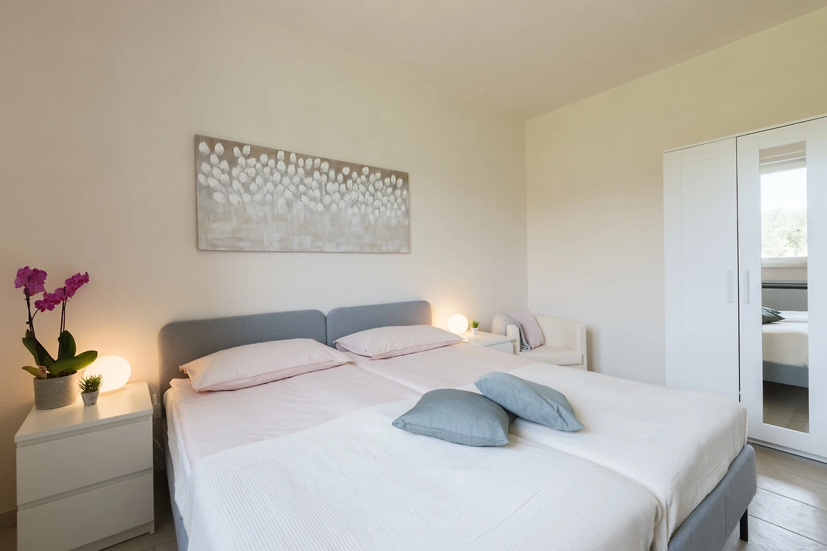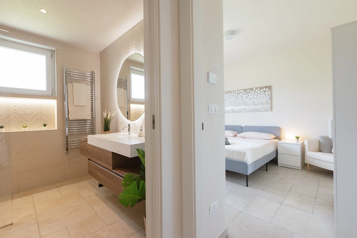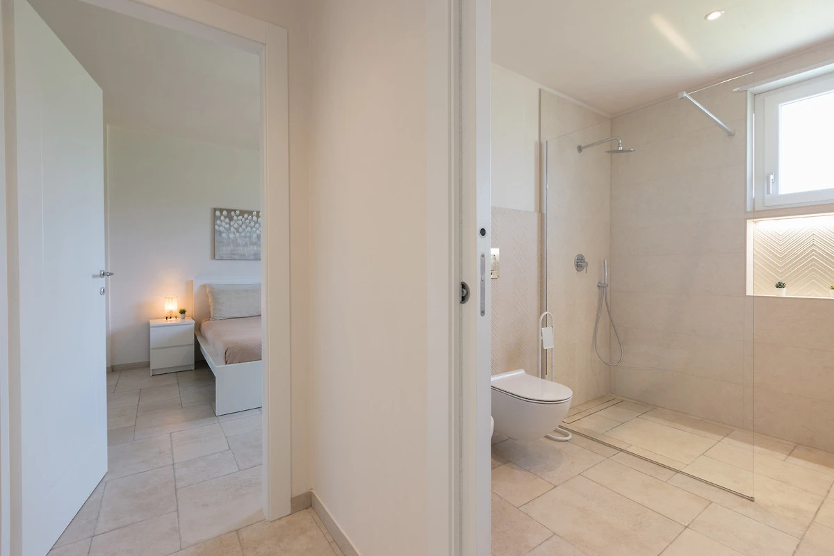 n.2 klimatisierte Doppelzimmer, n.1 Badezimmer mit Dusche und Fussbodenheizung, n.1 Toilette, n.1 Wohnzimmer mit Küchenzeile und Doppelschlafcouch.