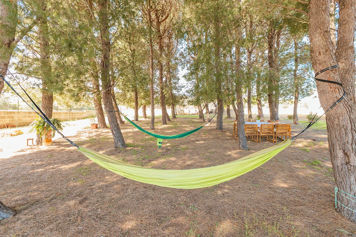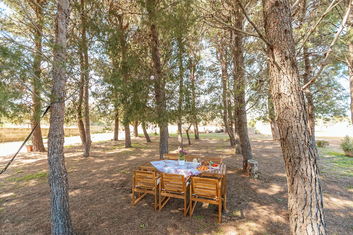 Für Mahlzeiten im Freien steht Ihnen ein zusätzlicher Esstisch im Schatten eines weitläufigen Pinienwaldes zur Verfügung