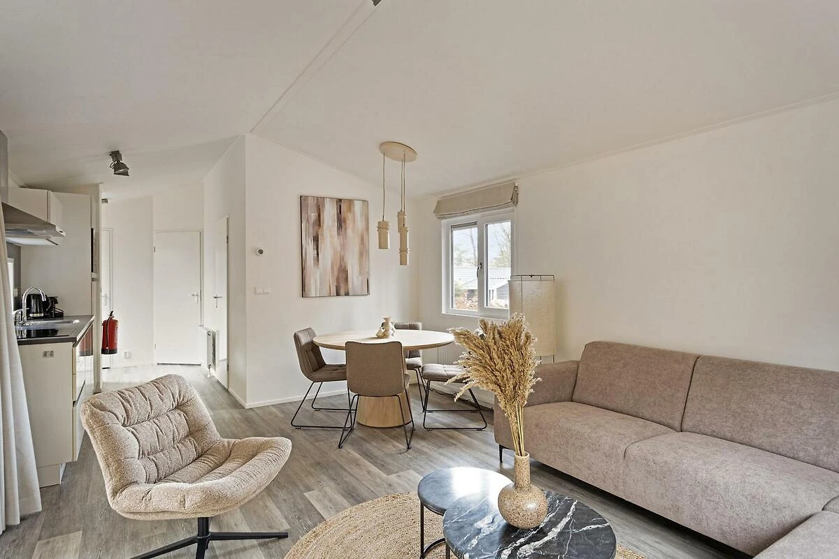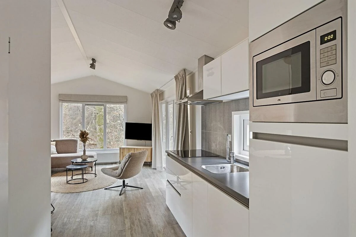 Die Wellness Lodge de Heuvelrug befindet sich vollständig im Erdgeschoss und verfügt über zwei komfortable Schlafzimmer: eines mit einem Doppelbett und eines mit zwei Einzelbetten. Das geräumige, helle Wohnzimmer ist geschmackvoll eingerichtet und bietet durch Flügeltüren einen direkten Zugang zur Terrasse. Hier können Sie den Blick auf den Wald geniessen, während Sie sich in der freien Natur entspannen. Die offene Küche ist mit allen modernen Annehmlichkeiten ausgestattet, wie z.B. einer Nespresso-Maschine, einem Induktionskochfeld, einer Kombimikrowelle, einem Kühlschrank mit Gefrierfach und einer Spülmaschine.