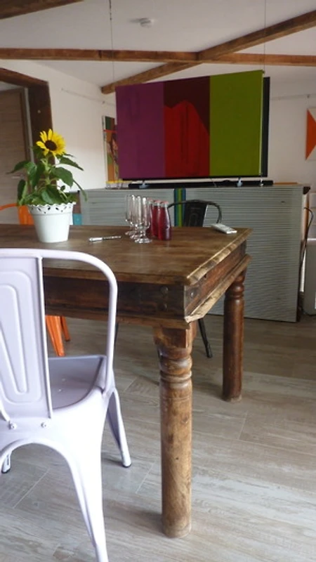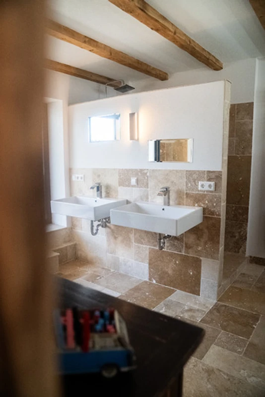 Die Ferienwohnung mit knapp 102 qm vereint den beliebten shabby chic Stil mit funktionaler Architektur und schafft ein harmonisches Zusammenspiel aus weissem Rauputz und warmen Altholzelementen. Hochwertige, puristische Einrichtung und edle Materialien sorgen für ein Wohngefühl, das Ihre Sinne verwöhnt.