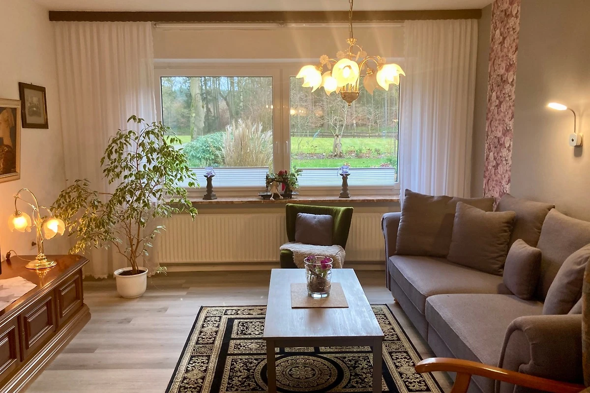 Das Ferienhaus steht am Ortsrand von Armstorf (2,5 km), unmittelbar am Waldrand, auf einem ca. 3.000m² grossen, sehr gepflegten, offenen Gartengrundstück mit Rasenspielfläche, altem Baumbestand sowie mehreren Freisitzen. Zur Hausrückseite eröffnet sich eine weite und freie Sicht über Wiesen und Felder. PKW-Stellplätze vorhanden; auf Anfrage Garagenstellplatz (€ 5 pro Tag).