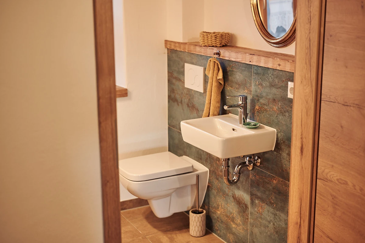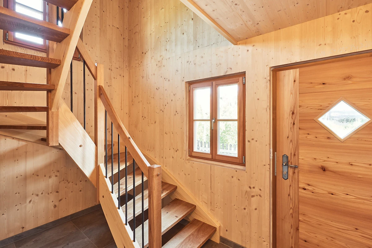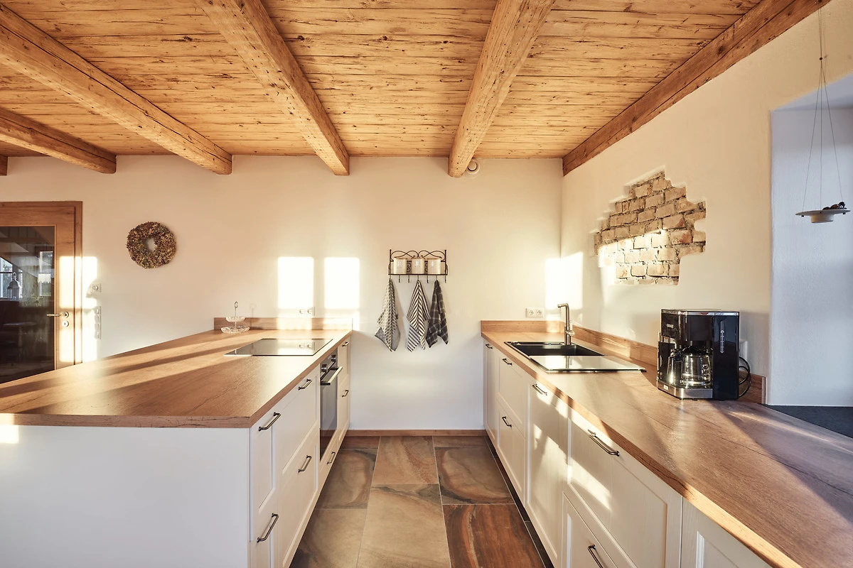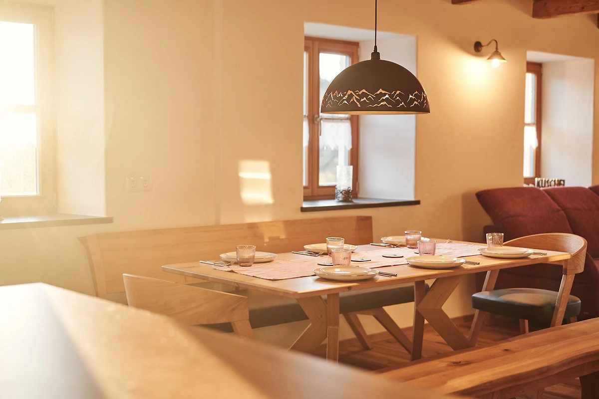 Als Zimmerei war es für uns ein MUSS, den alten Dachstuhl zu erhalten. Er ist in den beiden Schlafzimmern und auch im Badezimmer im Originalzustand (seit 1880) sichtbar. Das Dach und auch die alten dicken Mauern wurden mit nachhaltigem Holz gedämmt. So wartet zusammen mit der Fussbodenheizung und der Lüftungsanlage ein wohlig warmes Klima auf alle Gäste.