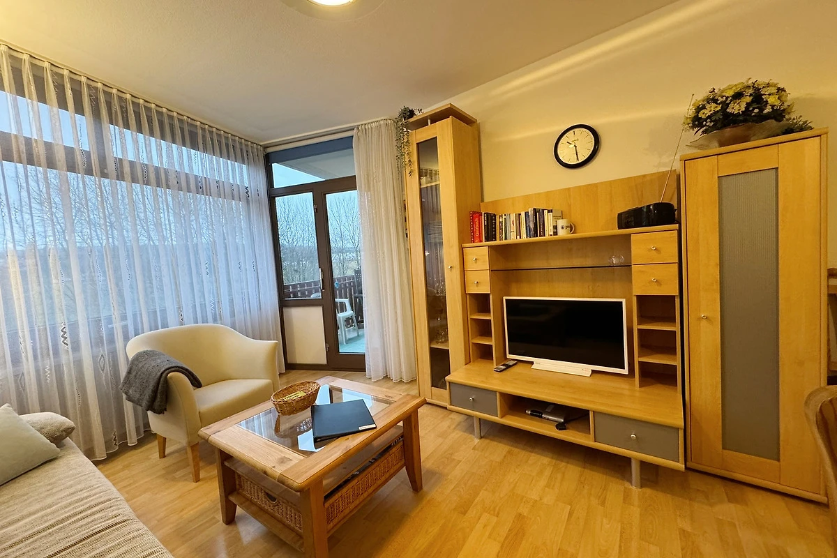 - ein gemütliches Wohn- und Esszimmer mit einem Schlafsofa (140x200cm)