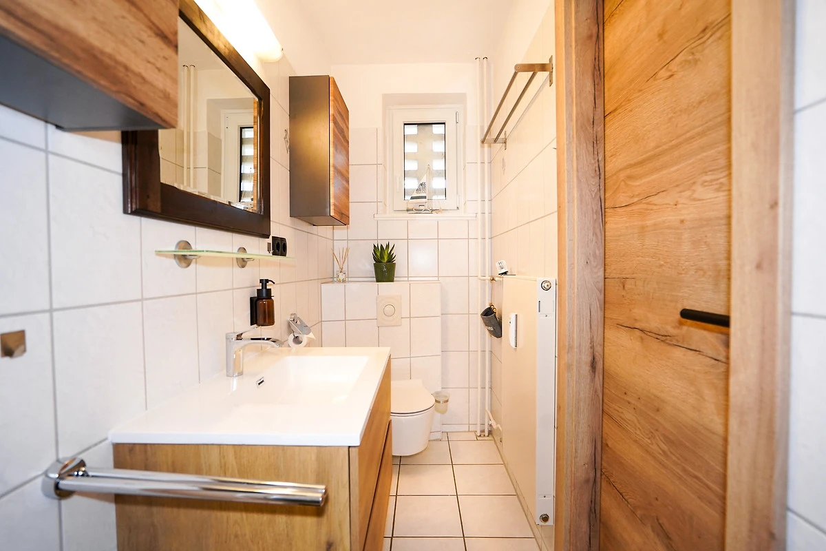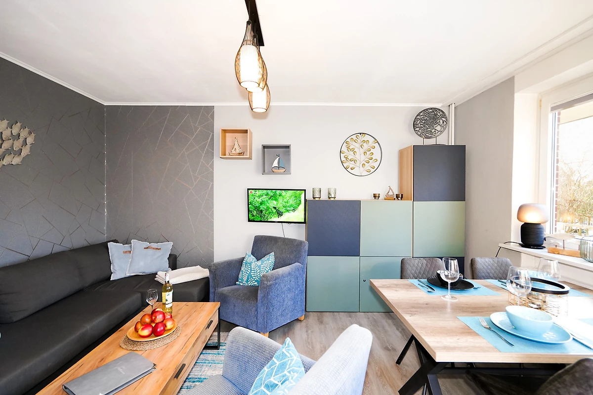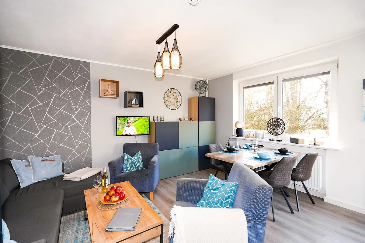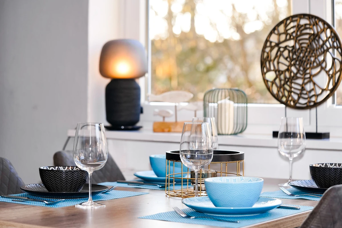 Die helle, moderne Ferienwohnung ist geschmackvoll eingerichtet und verfügt über eine neue Küchenzeile mit Ceranfeld, Backofen, Mikrowelle, Spülmaschine, Kühlschrank mit Gefriermöglichkeit und einer guten Küchenausstattung.