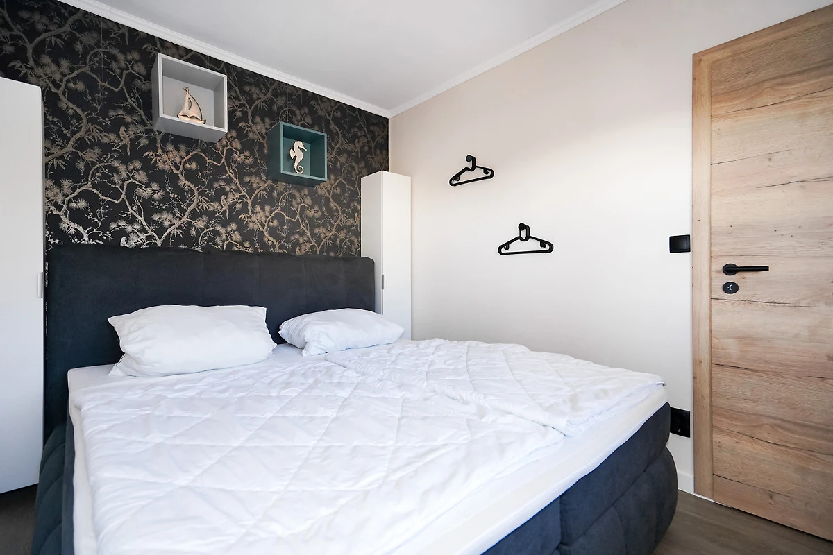 Das Schlafzimmer ist mit einem grossen Boxspringbett (180x200 cm) und Kleideraufbewahrung ausgestattet. Der Wohnraum bietet ein zusätzliches komfortables grosses Schlafsofa (140x200m) mit Topper.