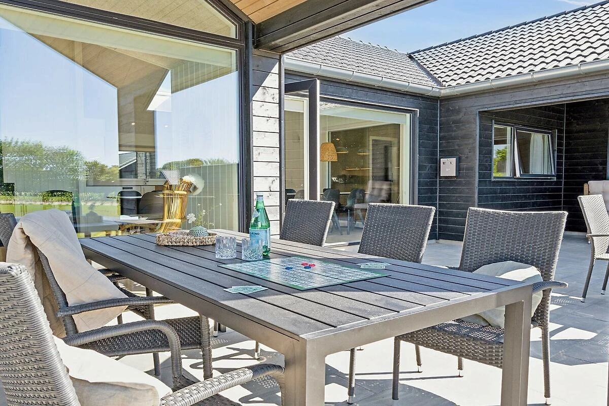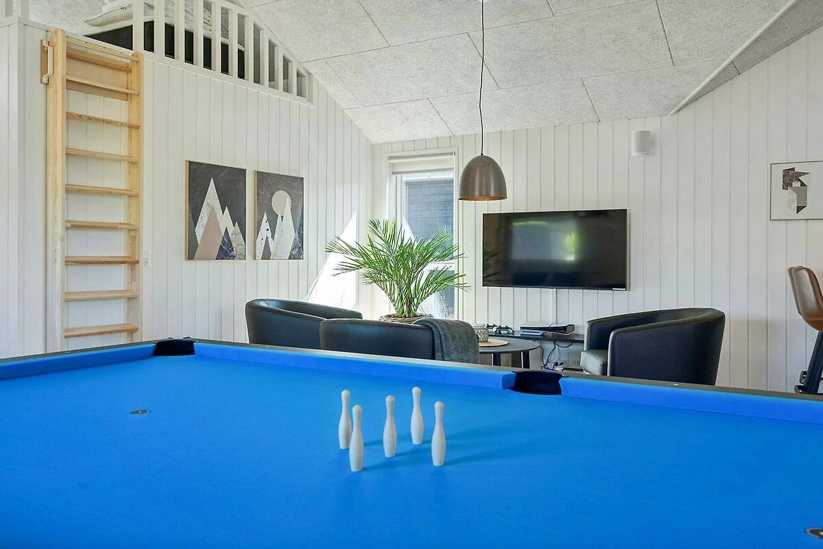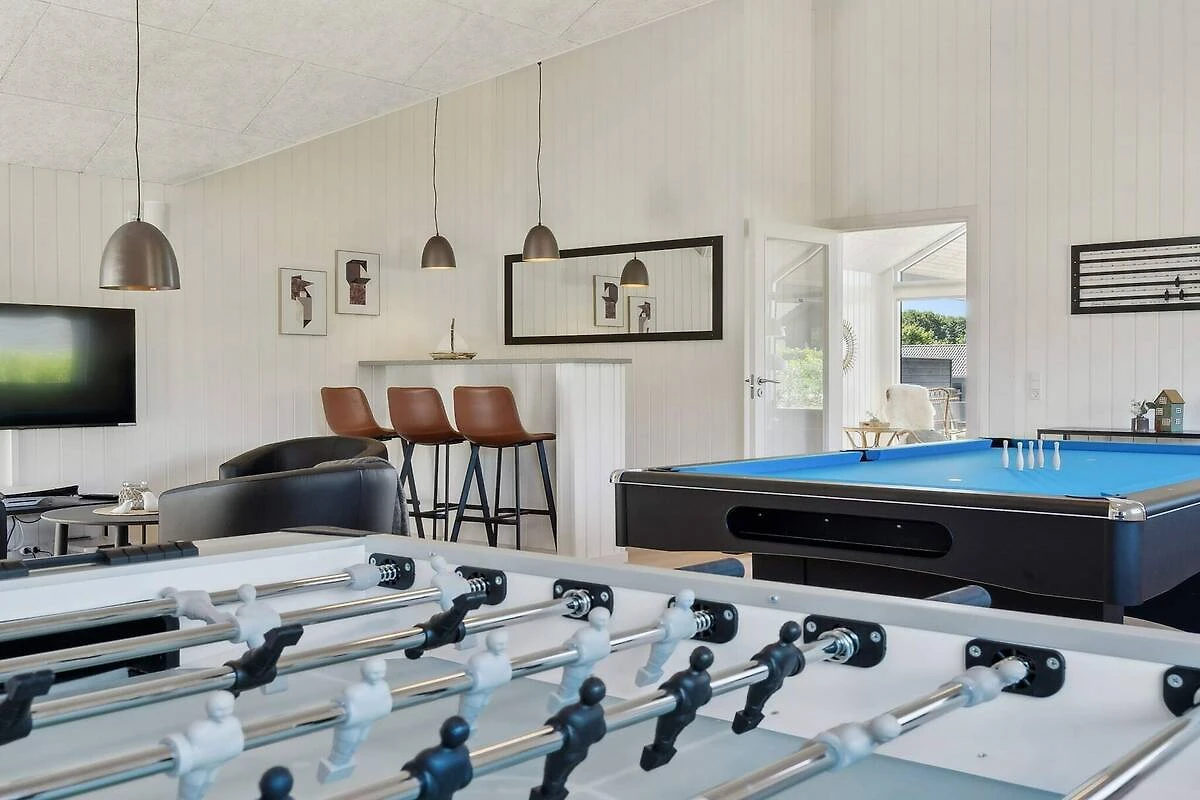 , Wohnzimmer(TV(Deutsch Fernsehsender, dänische Fernsehsender, norwegische Fernsehsender, schwedische Fernsehsender), Stereoanlage), Wohnzimmer(Trockner, Waschmaschine), Wohnzimmer(2x Einzelbett), Wohnzimmer(2x Einzelbett), Küche(Kaffeemaschine, Mikrowelle, Spülmaschine, Kühlschrank, Tiefkühlschrank(> 250L)), Schlafzimmer(Doppelbett), Schlafzimmer(Doppelbett), Schlafzimmer(2x Einzelbett), Schlafzimmer(2x Einzelbett), Schlafzimmer(2x Einzelbett), Schlafzimmer(2x Einzelbett), Schlafzimmer(2x Einzelbett), Badezimmer(Waschbecken, Dusche, Toilette), Badezimmer(Waschbecken, Dusche, Toilette), Badezimmer(Waschbecken, Dusche, Toilette), outdoor shower(im Garten), Spielkonsole, Whirlwanne(im Garten, 5 Personen), Sauna(im Innenbereich, 5 Personen), Heizung(elektrisch), Gartenmöbel, Pool(im Innenbereich), Tischtennisplatte, Tischfußball, Dart, Billard