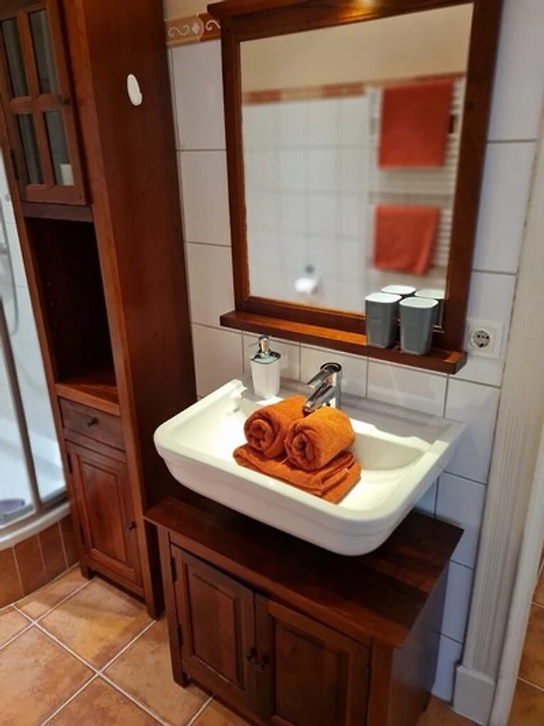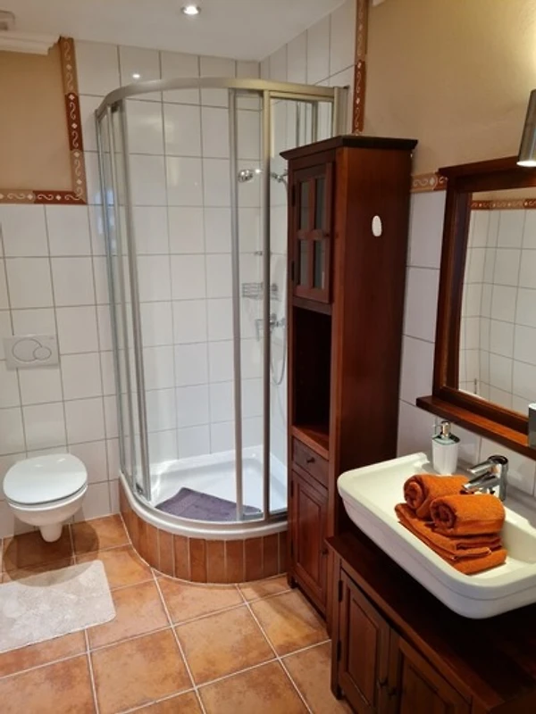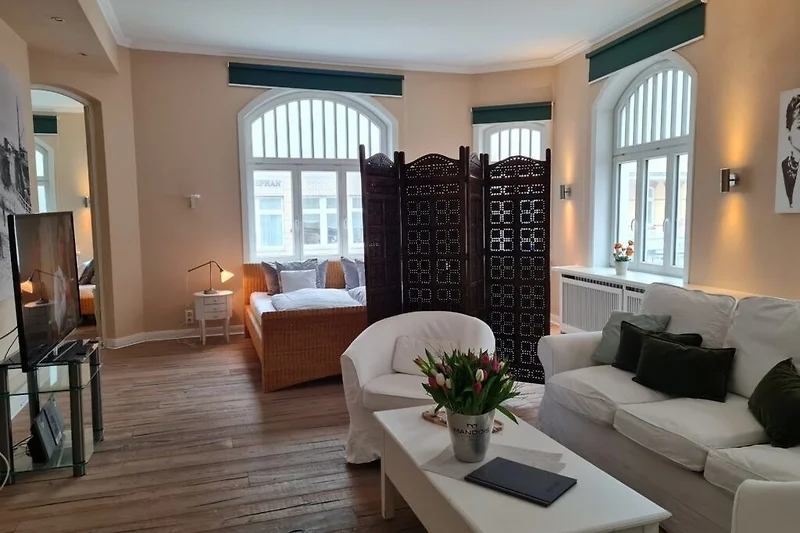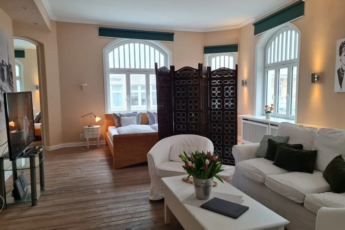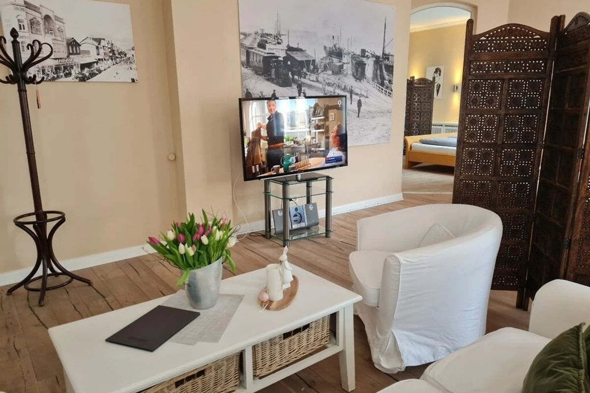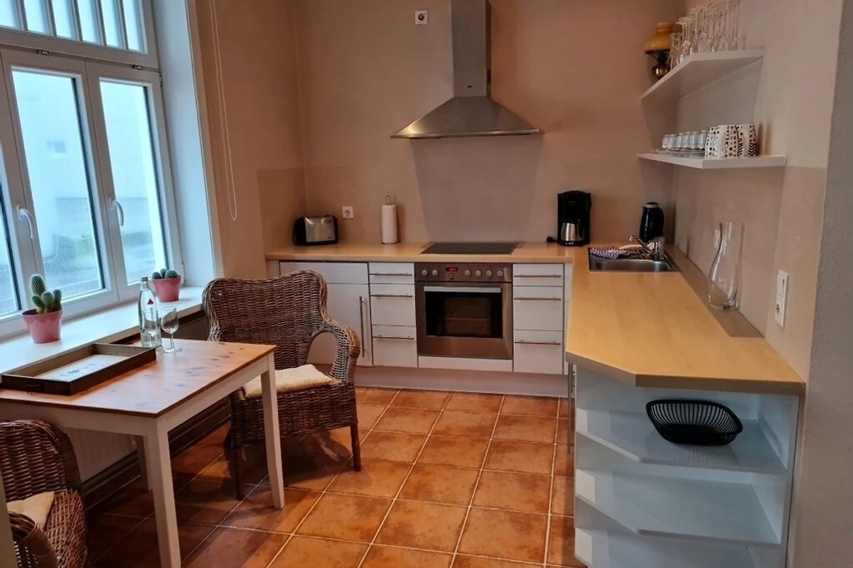 Die Ferienwohnung befindet sich im 1. Obergeschoss mit Ausblick auf die Friedrichstrasse. Holzboden, helle Möbel und nicht zuletzt der besondere Charme des Hauses gehören zu den Räumlichkeiten. Die Badezimmer in unserem Gästehaus sind alle topmodern und selbstverständlich in sehr gepflegtem Zustand.