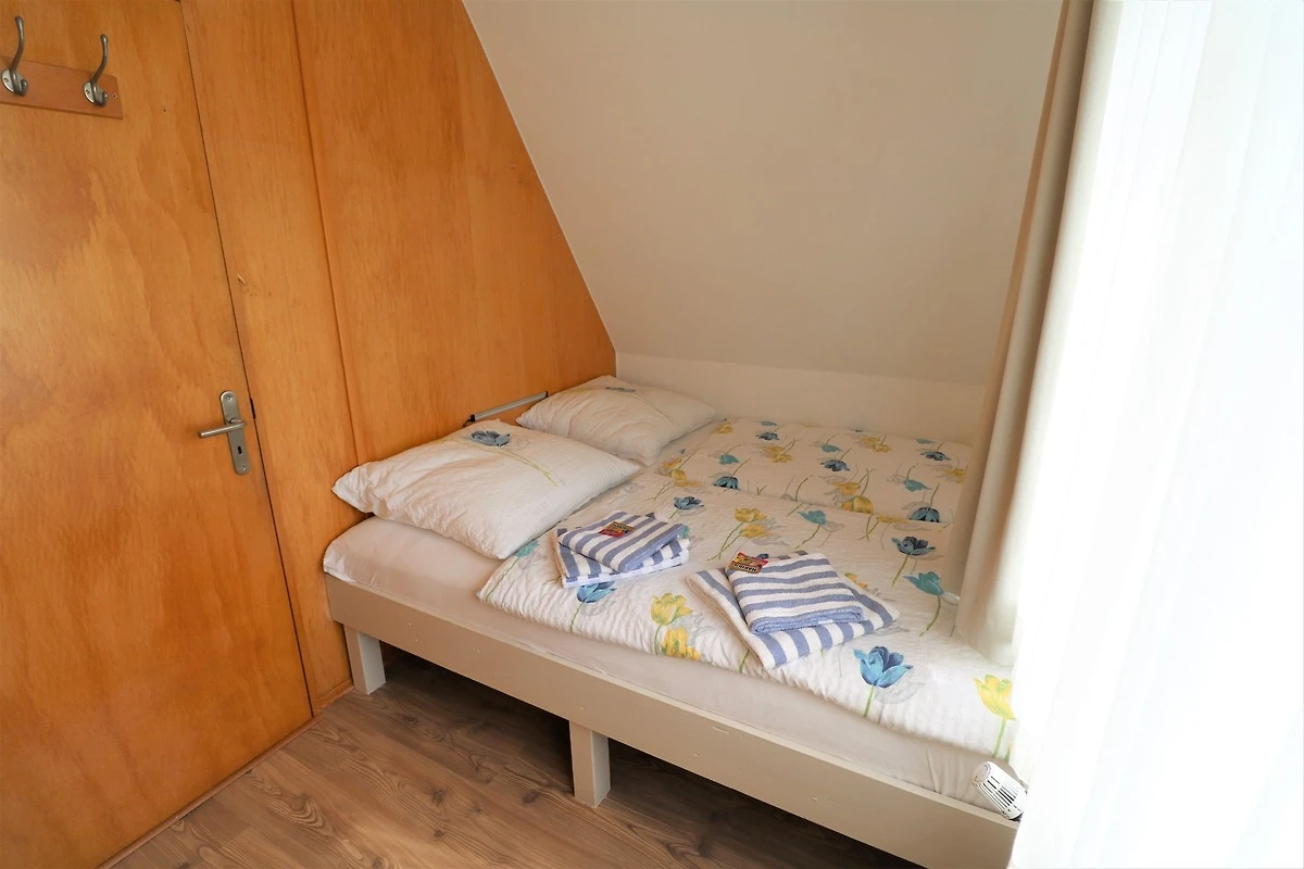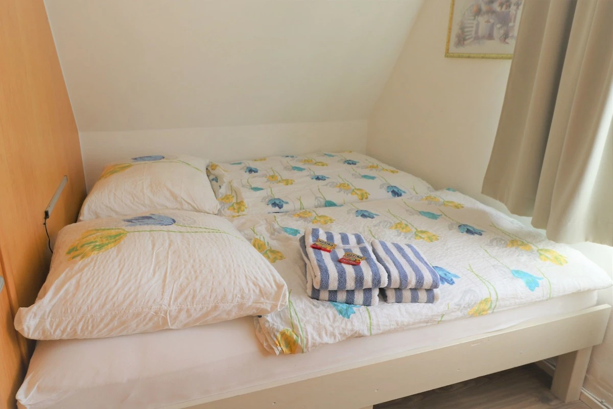 Das Haus befindet sich in ruhiger Lage und von hier sind es nur drei Minuten zur Promenade und acht Minuten zum Bäcker oder Supermarkt.