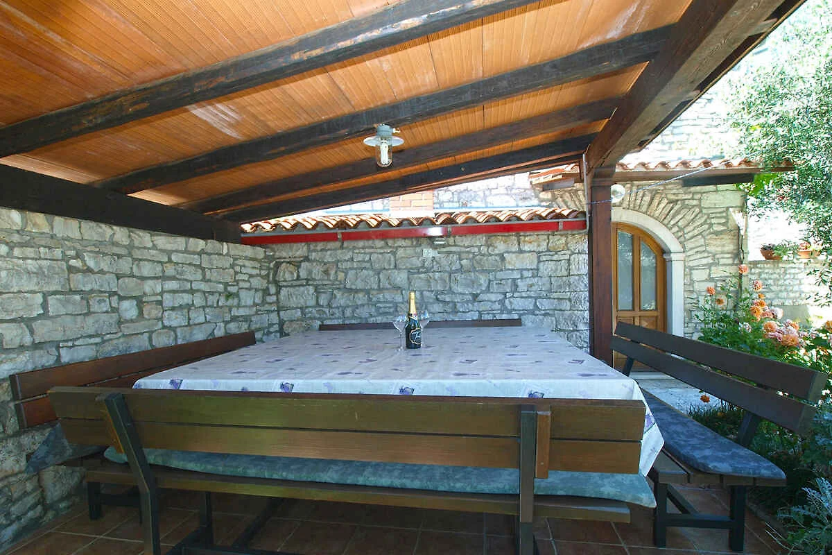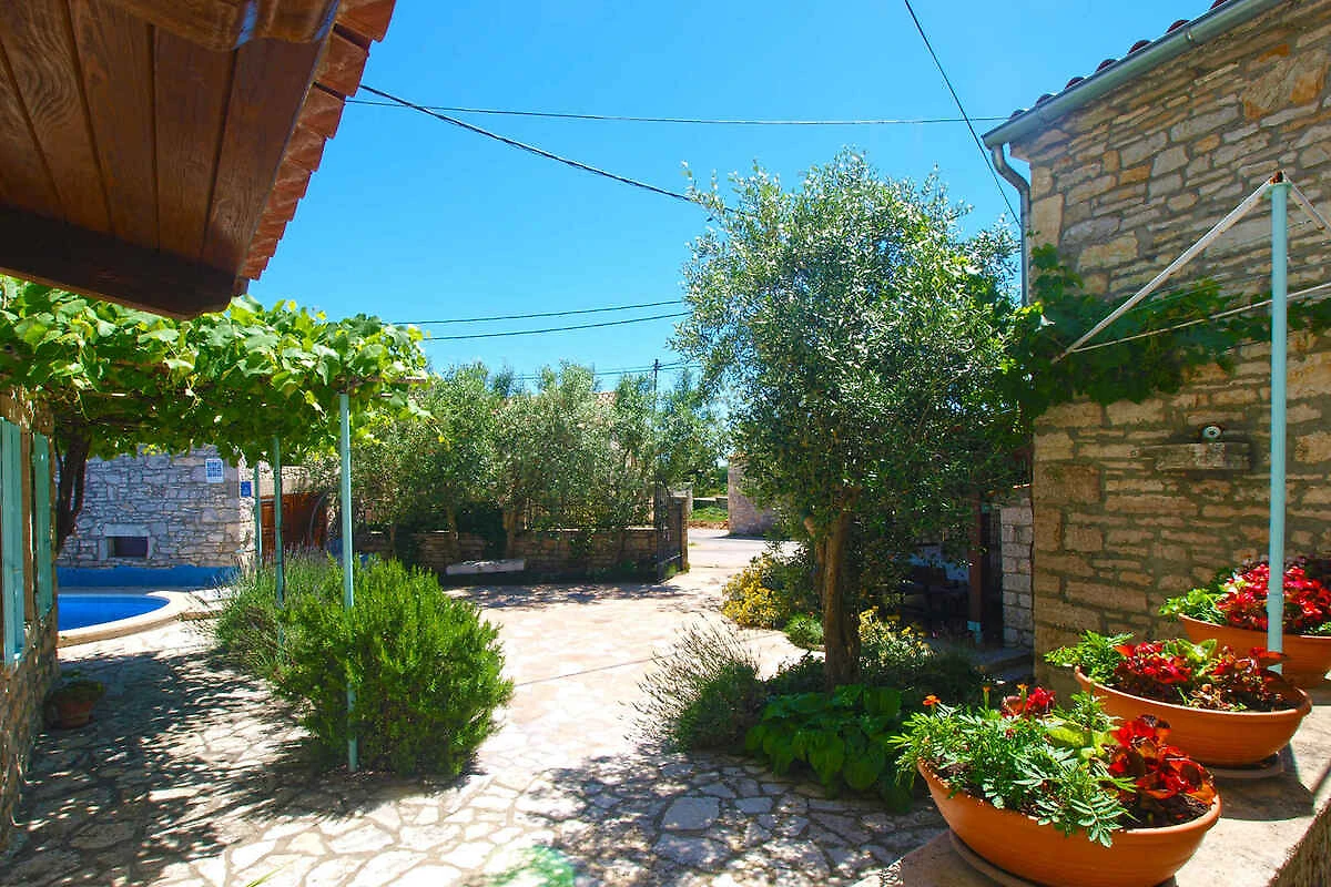Barban. Das Ferienhaus befindet sich auf einem 210 qm grossen, geschlossenen Gartengrundstück, von einem Zaun begrenzt. Parkplatz auf dem Grundstück.