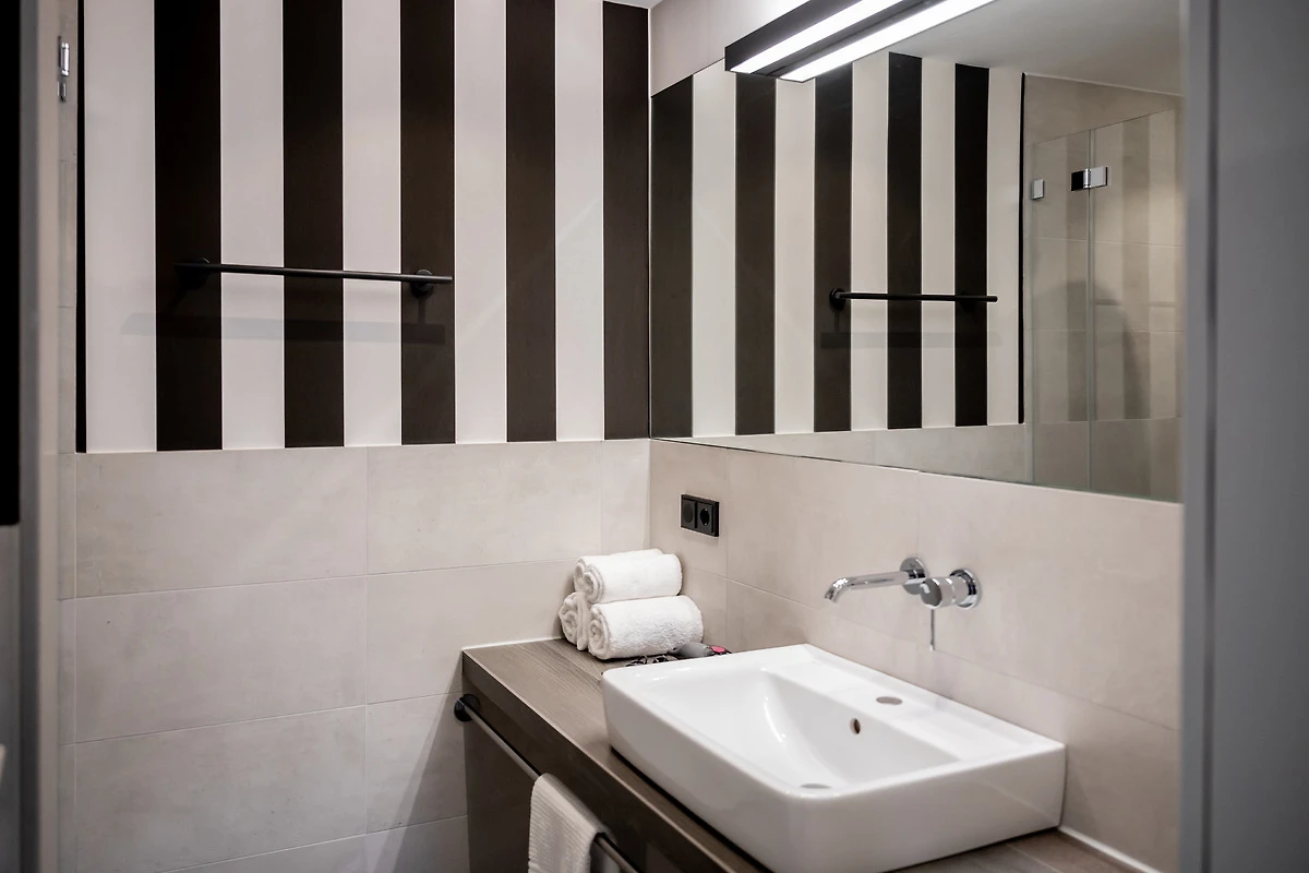 Sie betreten unsere Else durch einen Flur mit einer grosszügigen Garderobe mit Sitzgelegenheit. Vom Flur gehen das Wohnzimmer, das Schlafzimmer und das Badezimmer ab. Im Wohnbereich befindet sich eine vollausgestattete Einbauküche mit Essbereich für vier Personen, ein kuscheliges Hussensofa, ein Sessel und ein Flachbild-TV. Vom Wohnzimmer aus kommen Sie auf den Balkon mit Süd-West-Ausrichtung, auf dem Sie ein kleiner Tisch und Stühle erwarten. Hier können Sie den ersten Kaffee des Tages oder am Abend einen erfrischenden Sundowner geniessen. Das Schlafzimmer verfügt über ein gemütliches Boxspringbett, zwei grosse Kleiderschränke mit einem Zimmersafe und einen Flachbild-TV. Entschleunigen können Sie im separaten Badezimmer mit integriertem Internet-Radio und einer Regendusche. Die hochwertige Einrichtung umfasst u. a. Möbel von Riviera Maison.