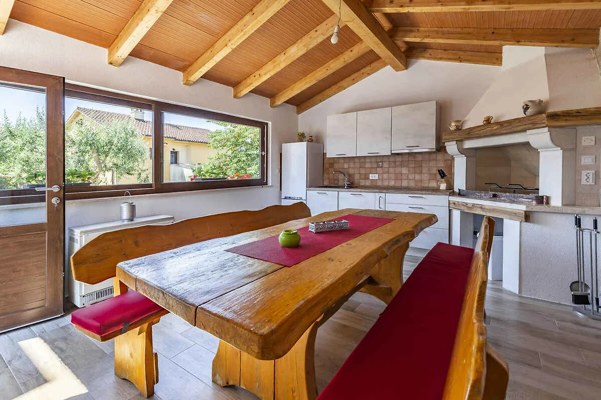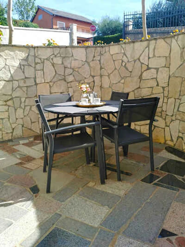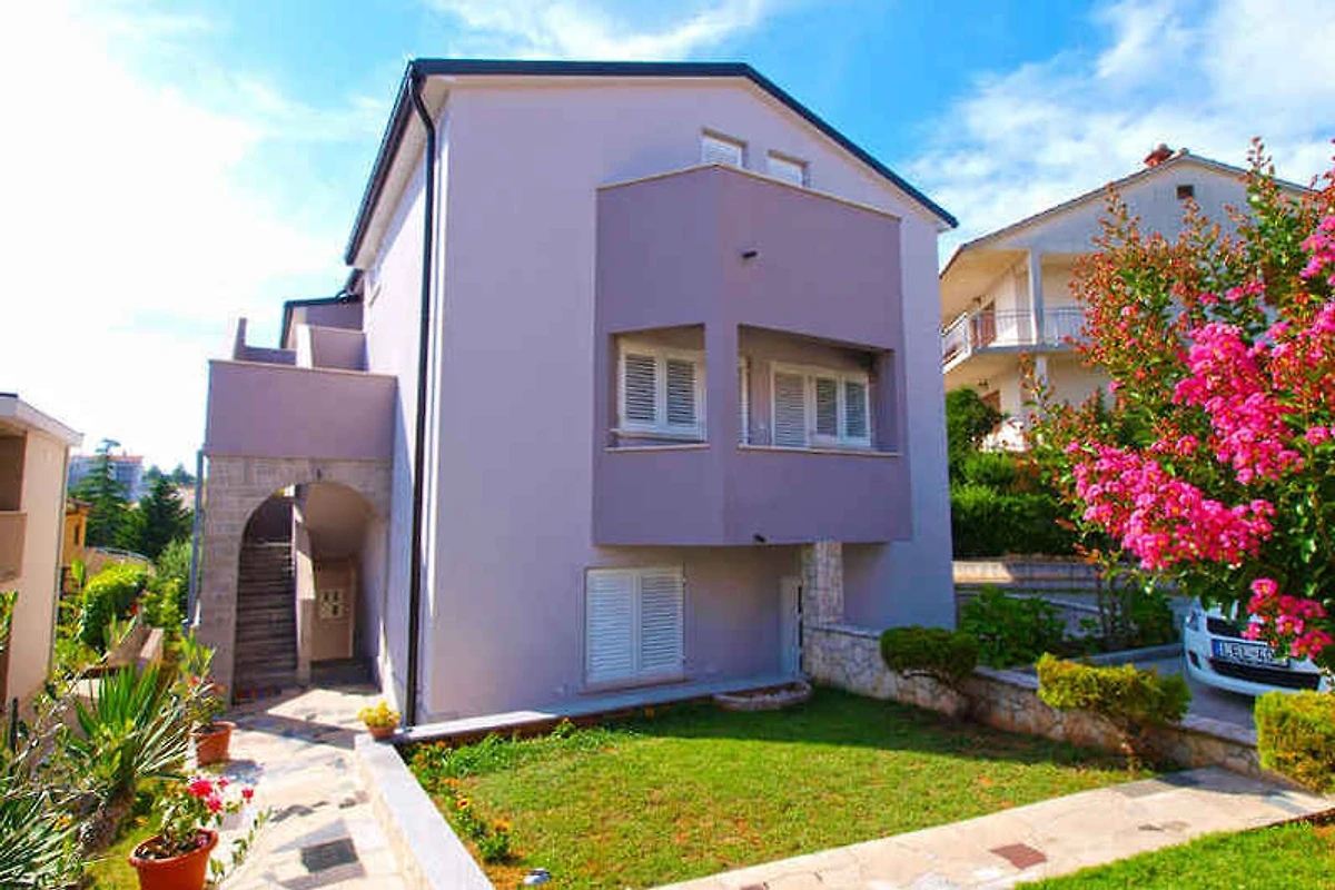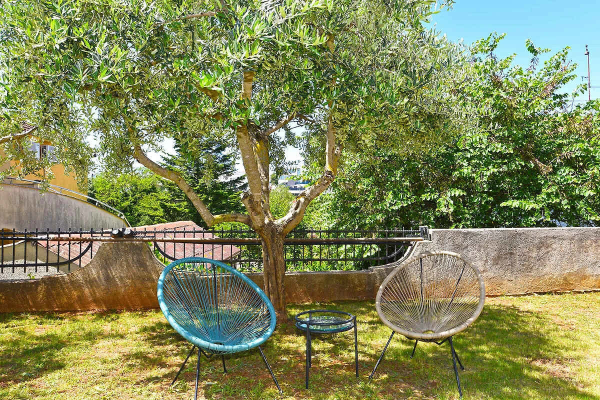 Medulin. Die Ferienwohnung befindet sich auf einem 40 qm grossen, geschlossenen Gartengrundstück, von einem Zaun begrenzt. Die Zufahrt erfolgt über einen Weg (asphaltiert). Parkplatz auf dem Grundstück.