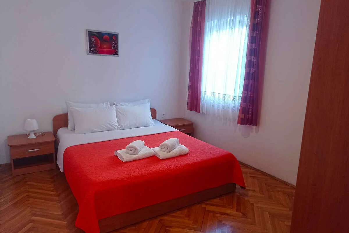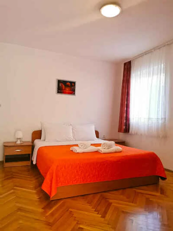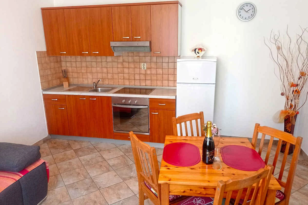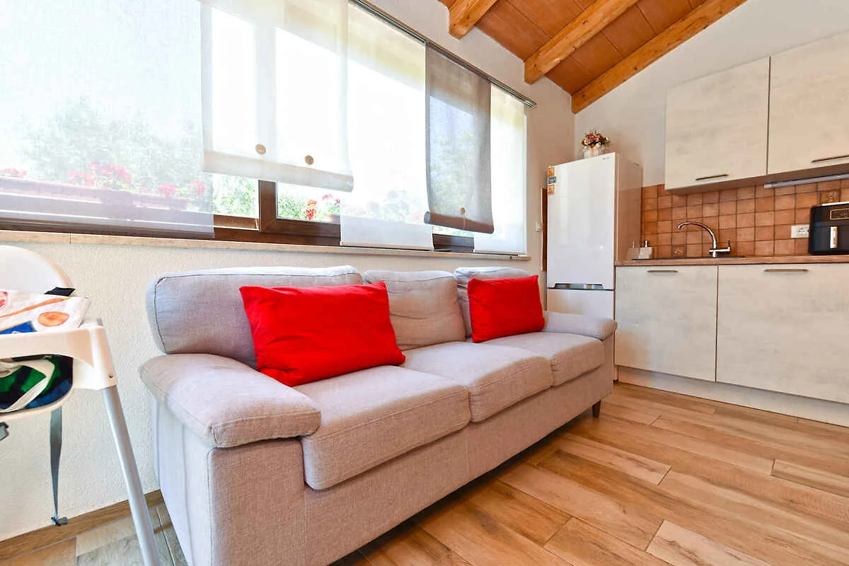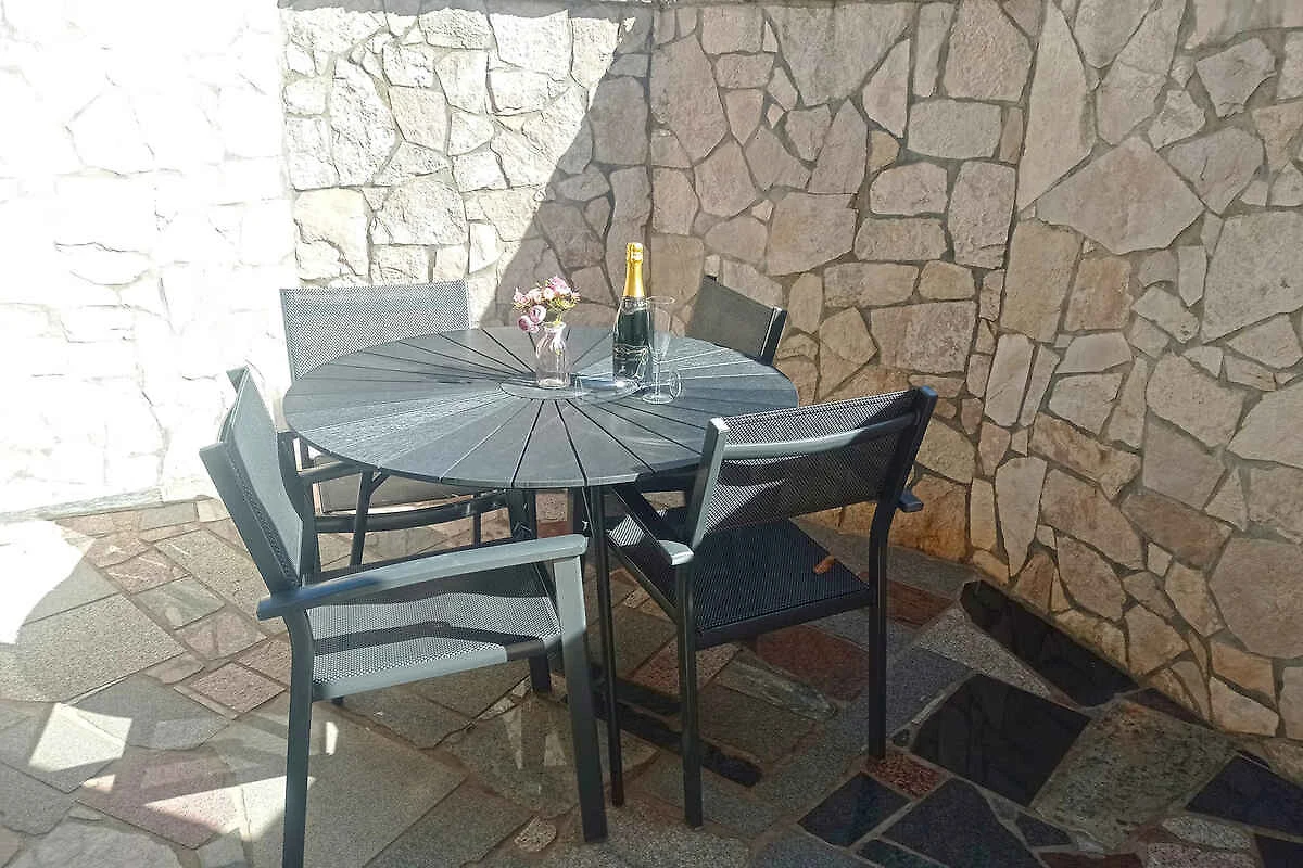 Medulin. Die Ferienwohnung befindet sich auf einem 40 qm grossen, geschlossenen Gartengrundstück, von einem Zaun begrenzt. Die Zufahrt erfolgt über einen Weg (asphaltiert). Parkplatz auf dem Grundstück.