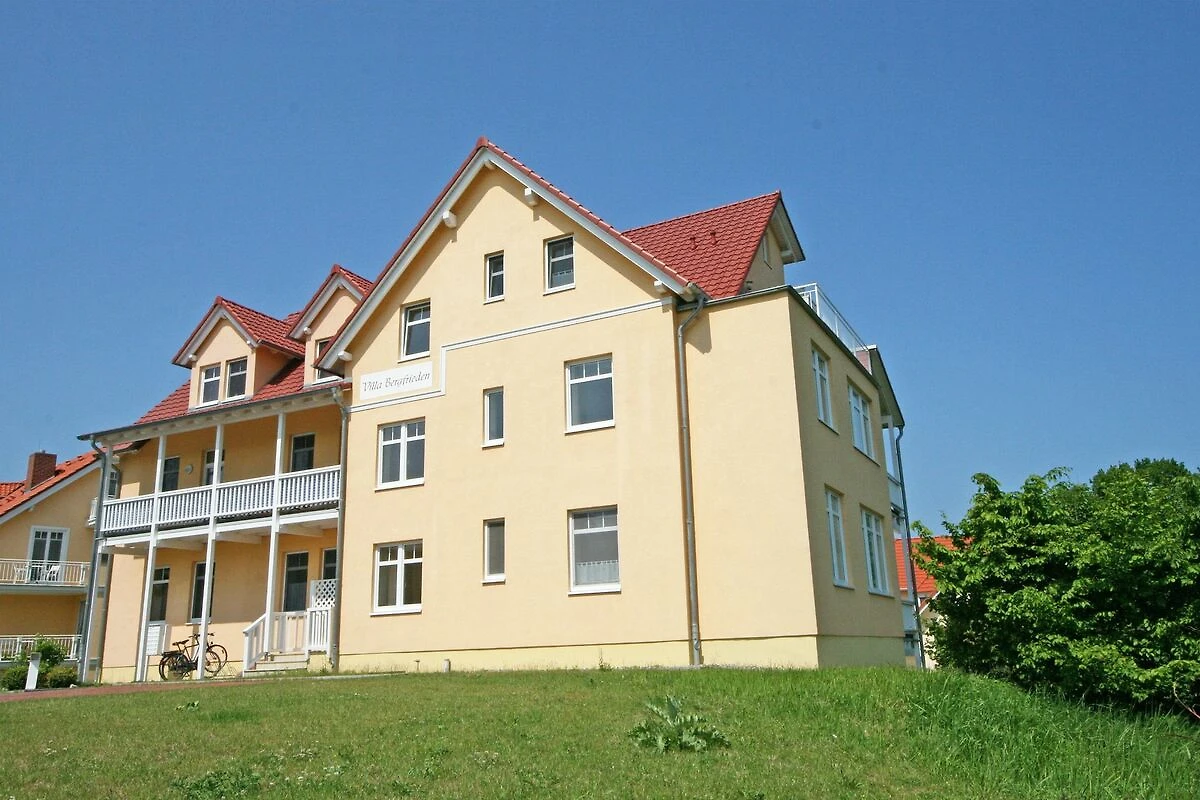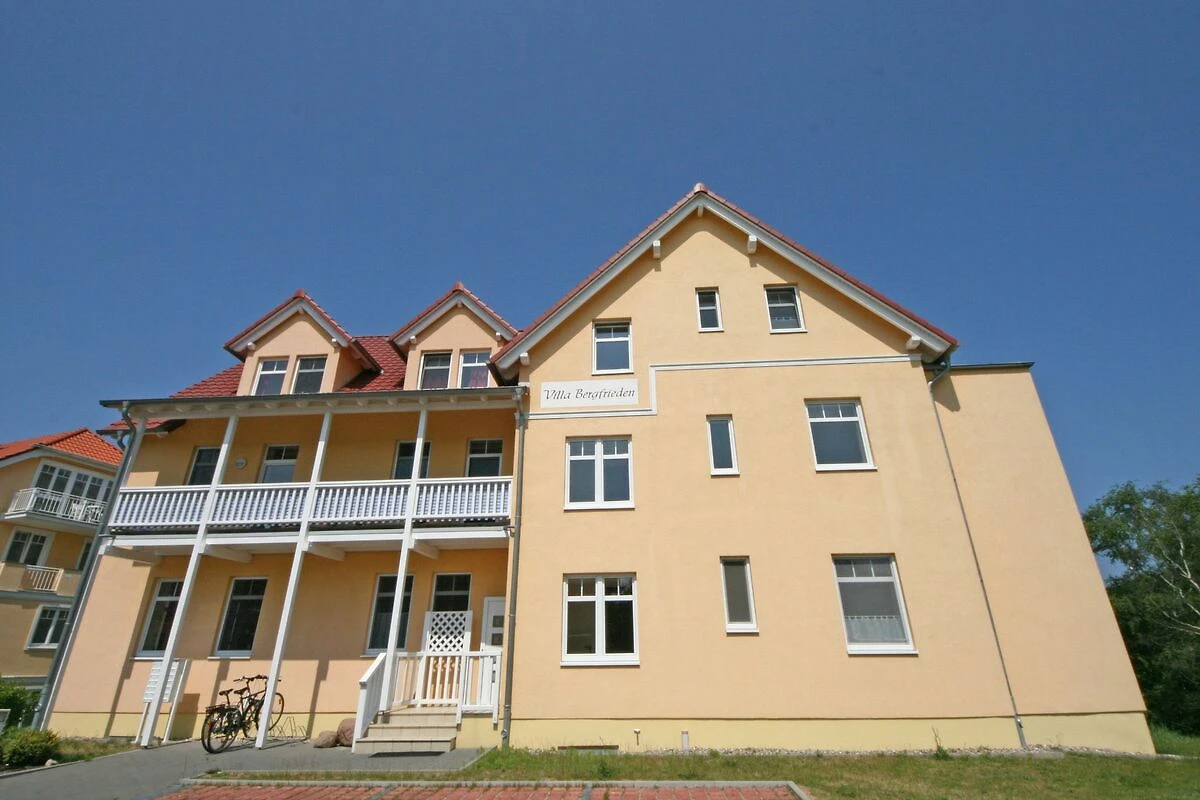 Die Villa Bergfrieden liegt auf einer kleinen Anhöhe direkt neben dem Küstenwald am Rande des Biosphärenreservates. Trotz der absolut ruhigen Lage ohne Autoverkehr, liegt die Villa Bergfrieden zentral. Zum wunderschönen Nordstrand und zum Ortszentrum sind es fussläufig nur zwei bis fünf Gehminuten. Die bevorzugte Lage wird noch unterstrichen durch den herrlichen Panoramablick bis zu den Kreidefelsen.