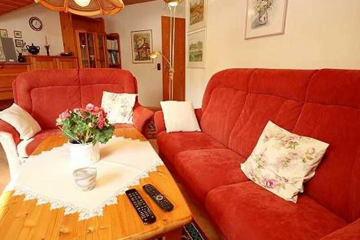 Die im OG befindliche grosszügige Wohnung besteht aus 3 Zimmern, die alle sehr liebevoll eingerichtet sind. Hier können Sie sich wohl- fühlen, entspannen und wunderbar in der ruhigen Atmosphäre unseres Hauses erholen. Die Wohnung hat eine komplette Wohnküche, die umfassend eingerichtet ist. Ein sehr gemütliches Wohnzimmer mit grossem TV , rückengerechter Couchgarnitur, Leseecke mit Sessel, Südbalkon sorgt für Entpannung und Ruhe. Das Schlafzimmer hat ein grosses Doppelbett mit sehr guten Matratzen, zusätzlich eine Couch zur kurzen Ruhe und hochwertige Betten zur Auswahl je nach Jahreszeit. Das Bad hat eine getrennte Dusche, Badewanne, 2 Waschbecken und ein WC..