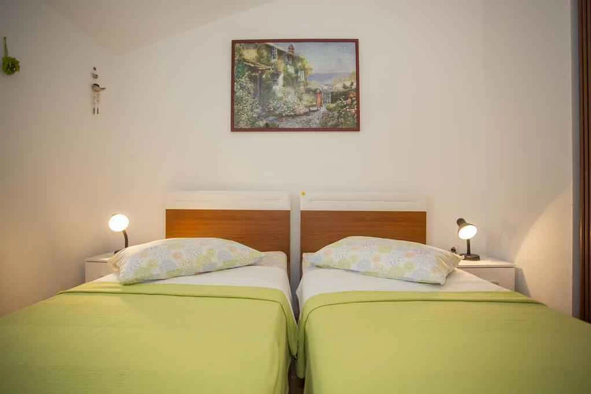 Pula. Die Ferienwohnung befindet sich auf einem 28 qm grossen Gartengrundstück. Die Zufahrt erfolgt über einen Weg (asphaltiert). Parkplatz auf dem Grundstück.