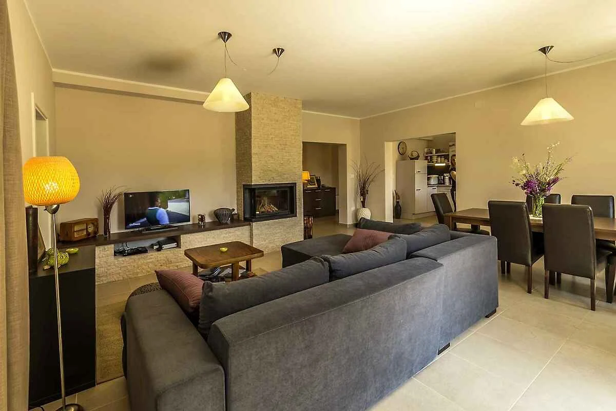 Wohnzimmer (Durchgangszimmer) mit Sitzecke und Essecke. 3 Schlafzimmer jeweils mit 1 Doppelbett. Amerikanische Küche mit Elektroherd, Backofen, Dunstabzugshaube, Geschirrspüler, Kühlschrank, Mikrowelle, Kaffeemaschine und Toaster. Bad mit Dusche, WC und Bidet. 2 Bäder jeweils mit Dusche. Separates WC mit WC.