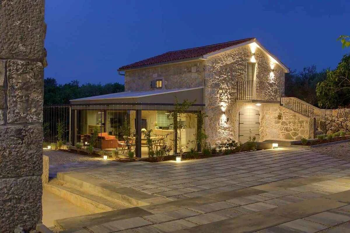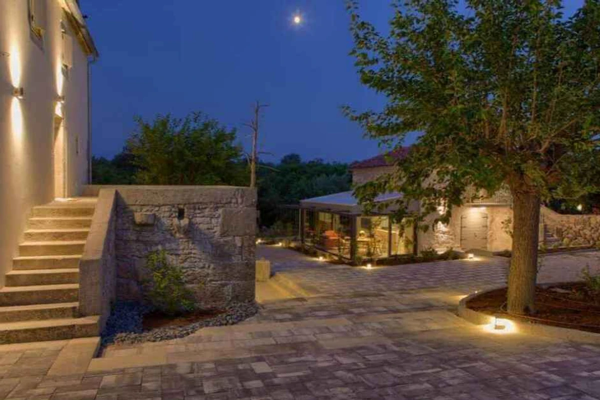 Bajčići. Die Villa befindet sich auf einem geschlossenen Gartengrundstück mit Blumen und Bäumen, von einem Zaun begrenzt. Die Zufahrt erfolgt über einen Weg (asphaltiert). Parkplatz auf dem Grundstück.